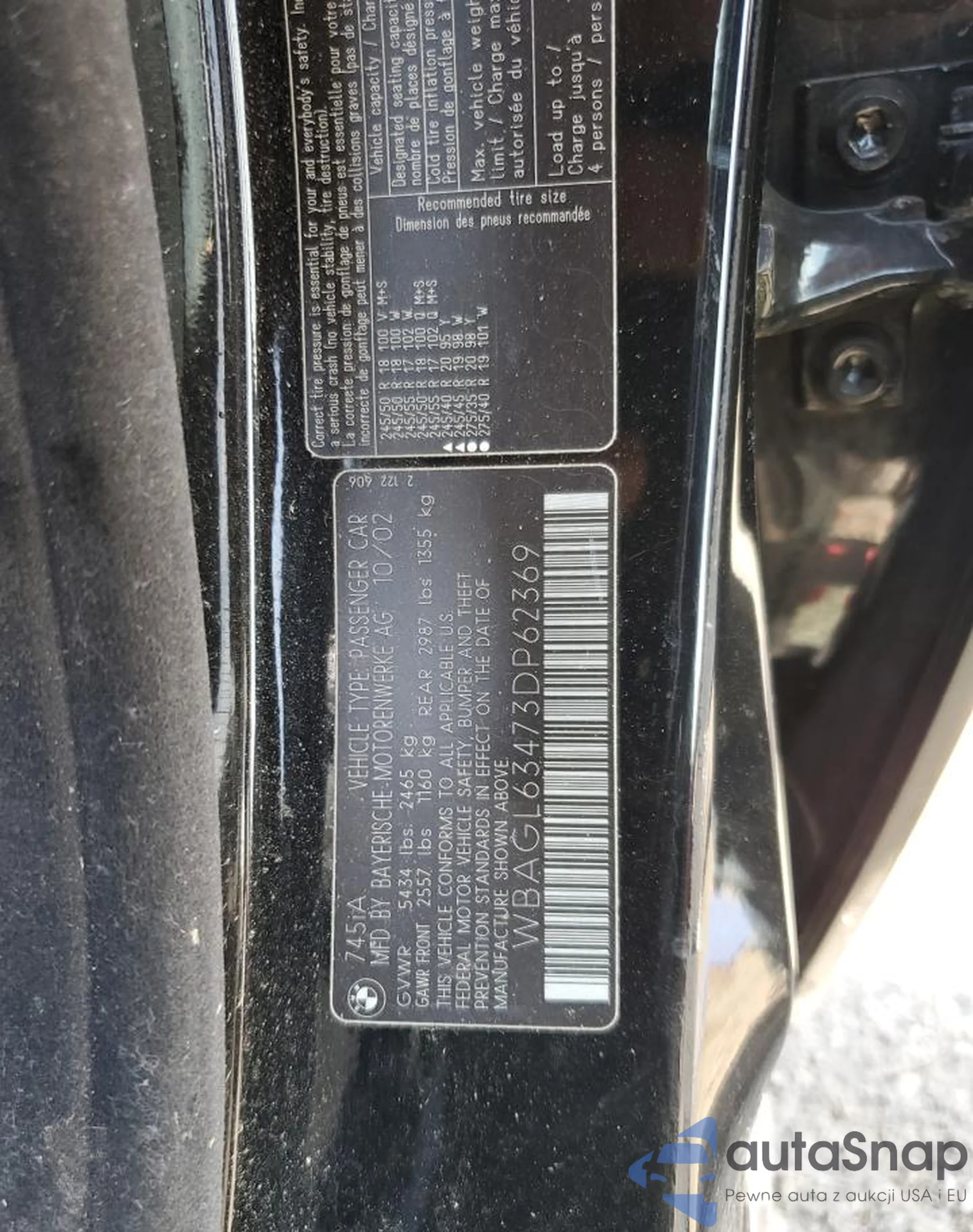 • VIN: WBAGL63473DP62369