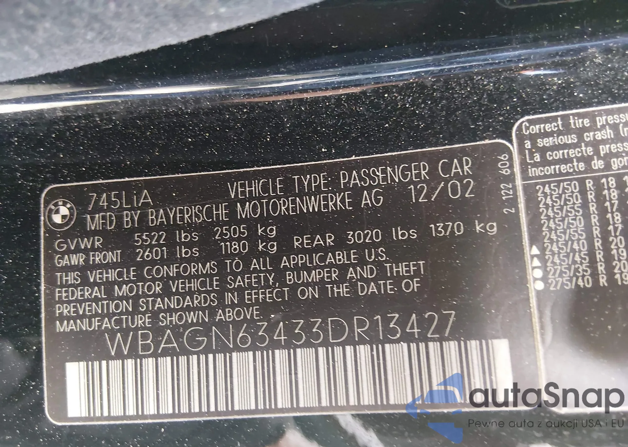 VIN: WBAGN63433DR13427