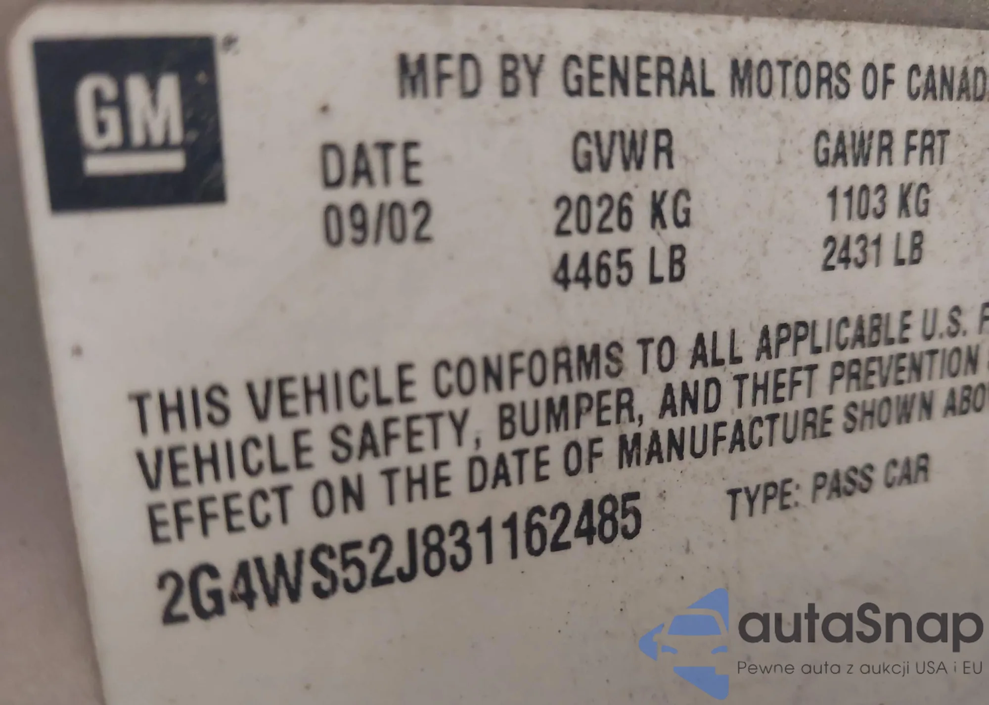 VIN: 2G4WS52J831162485