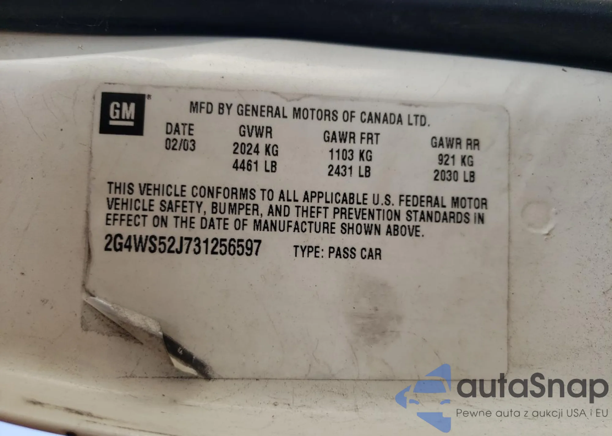 VIN: 2G4WS52J731256597