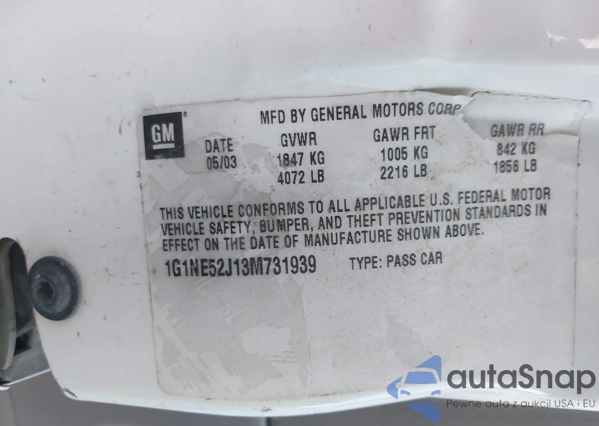 VIN: 1G1NE52J13M731939