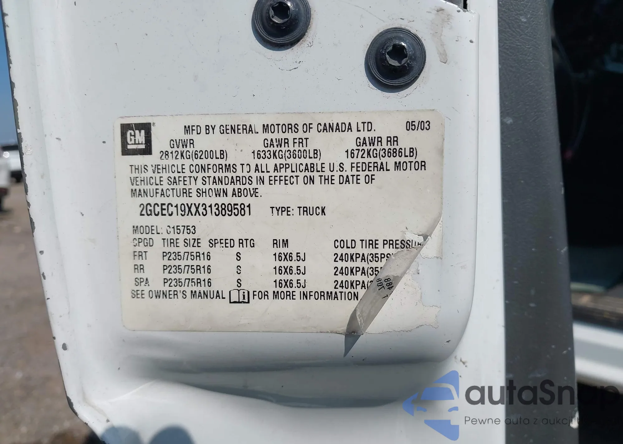 VIN: 2GCEC19XX31389581