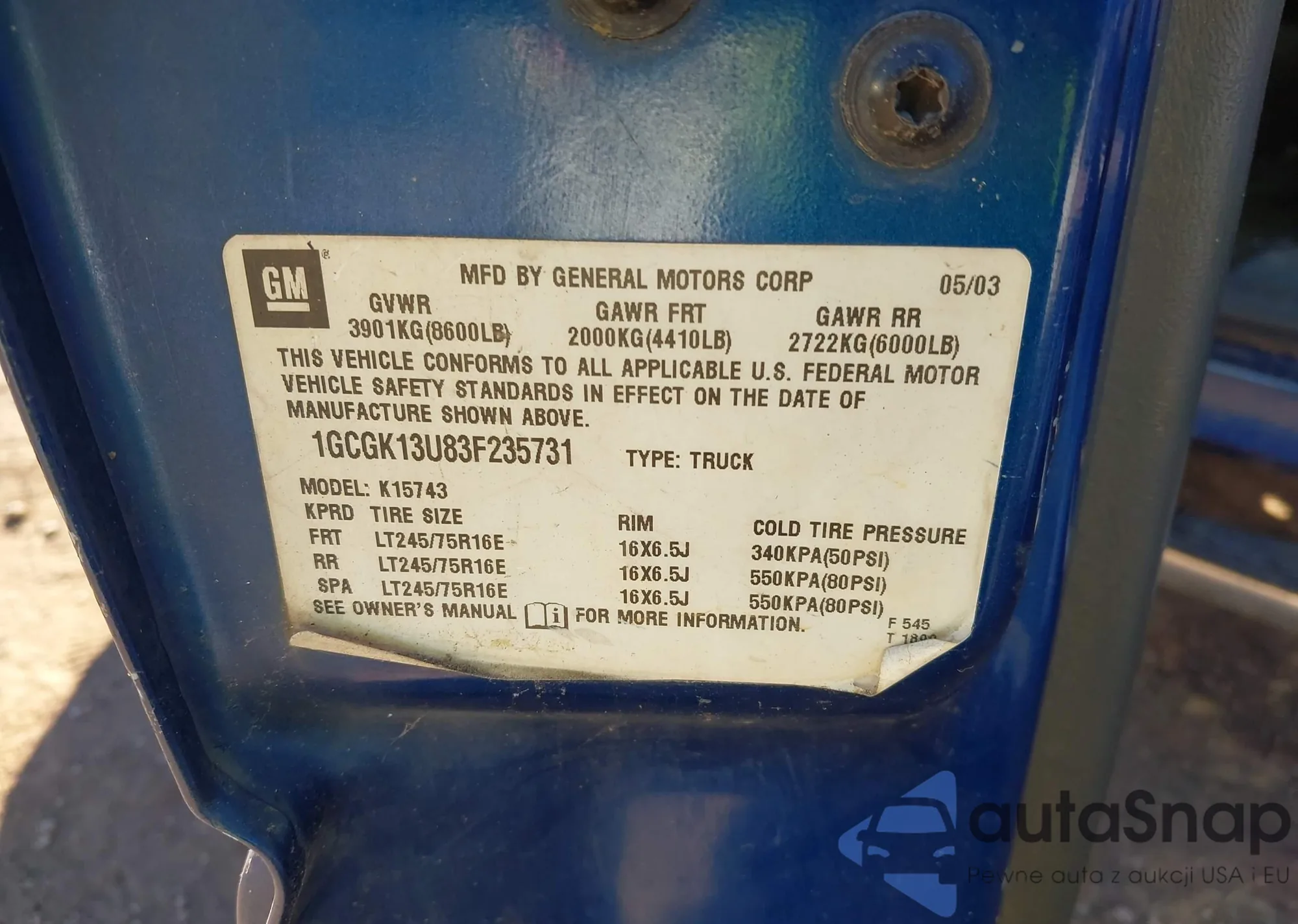 VIN: 1GCGK13U83F235731