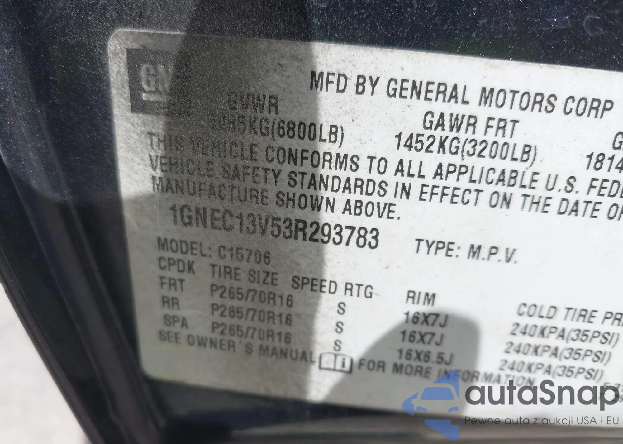 • VIN: 1GNEC13V53R293783
