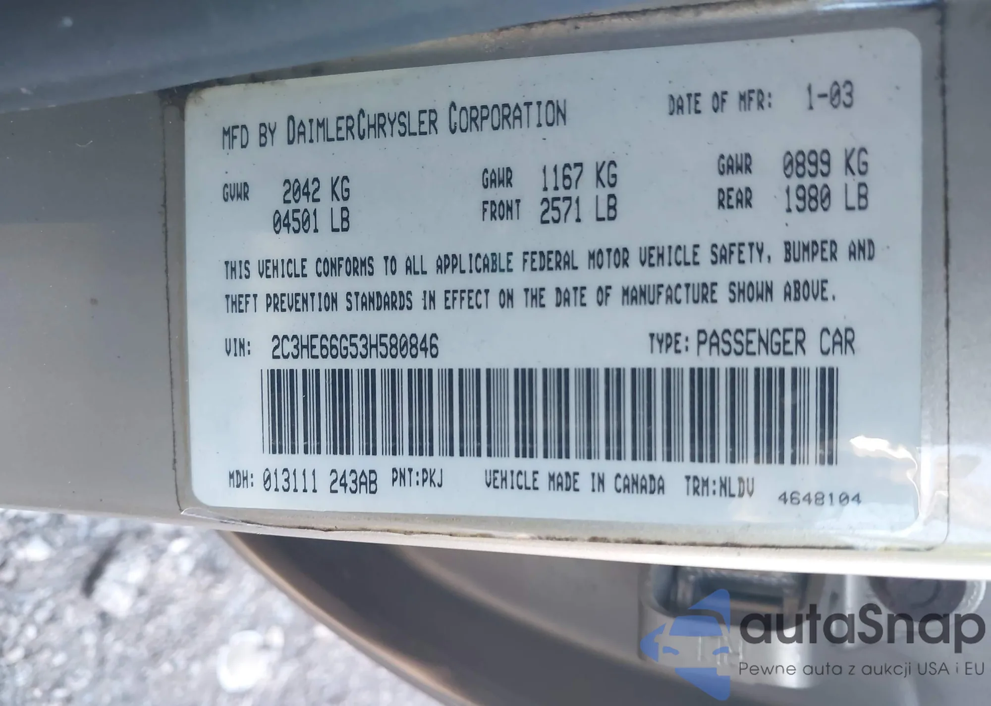 Автомобиль Chrysler 300M 2003 (VIN 2C3HE66G53H580846) ранее не участвовал в торгах. Документы чистые, пробег соответствует или ниже среднего по рынку. Продаётся страховой компанией — рекомендуем покупку. Доставка в порт займет около 6–8 недель.