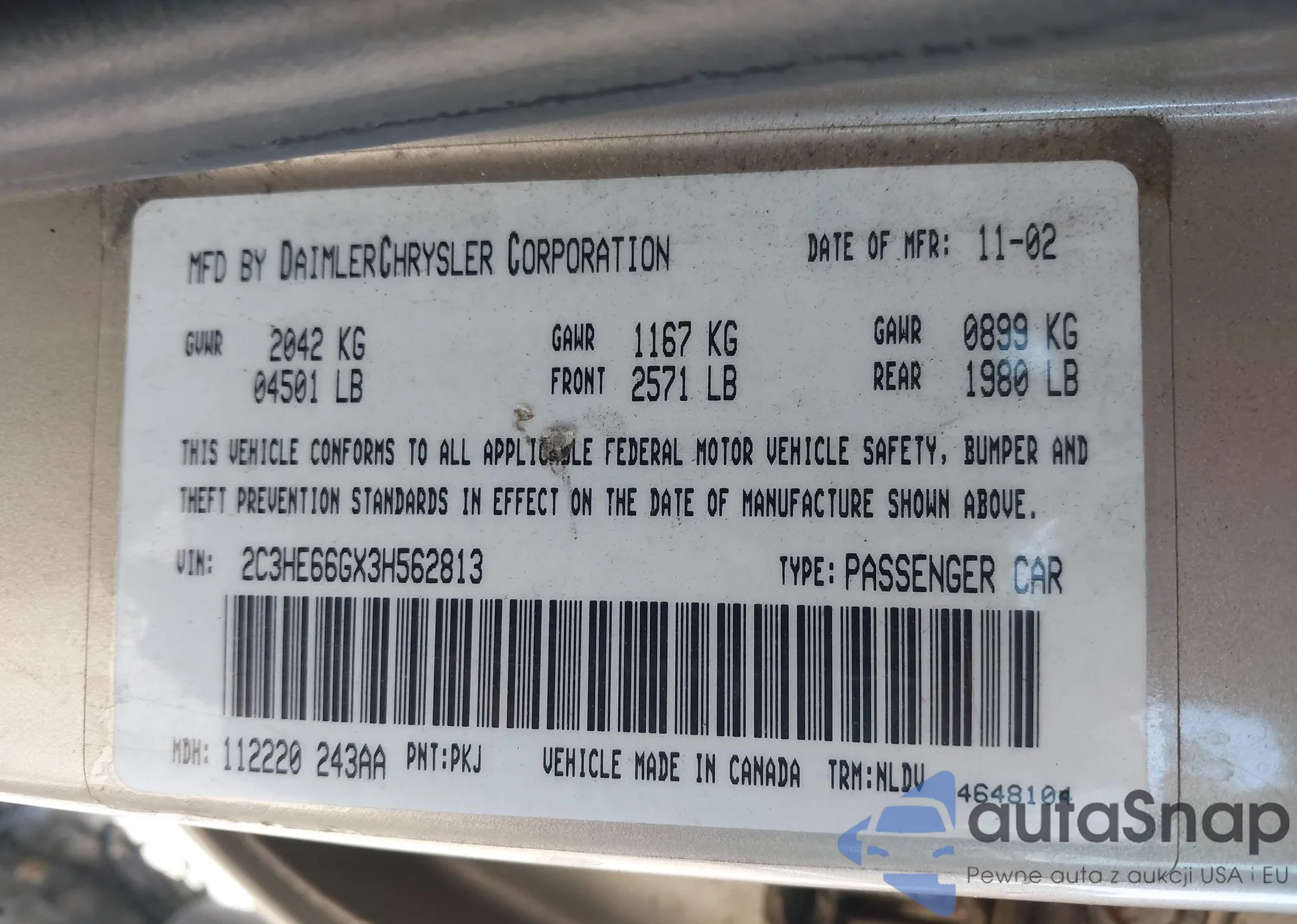 VIN: 2C3HE66GX3H562813