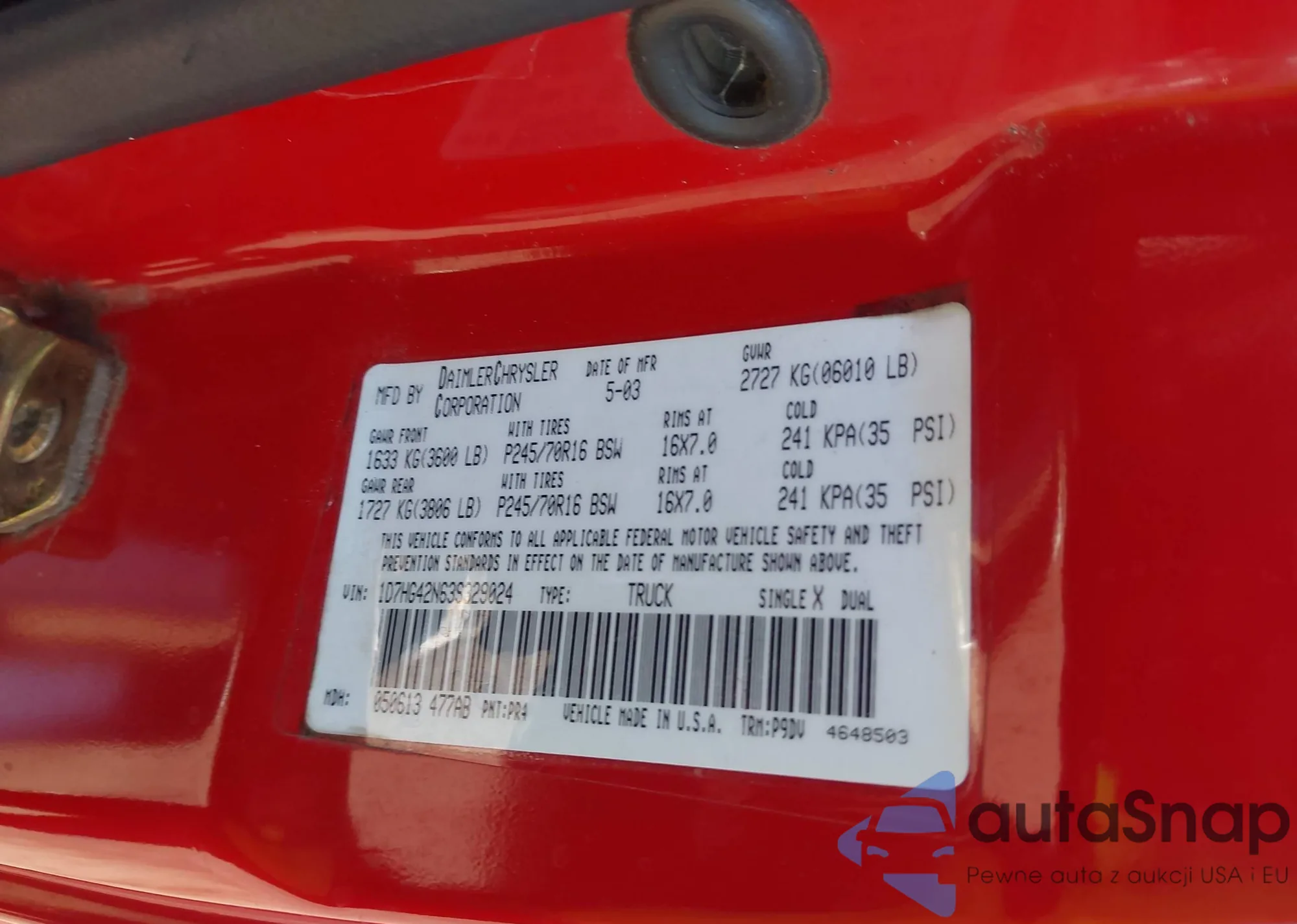 Автомобиль Dodge Dakota 2003 (VIN 1D7HG42N63S329024) ранее не участвовал в торгах. Документы чистые, пробег соответствует или ниже среднего по рынку. Продаётся страховой компанией — рекомендуем покупку. Доставка в порт займет около 6–8 недель.