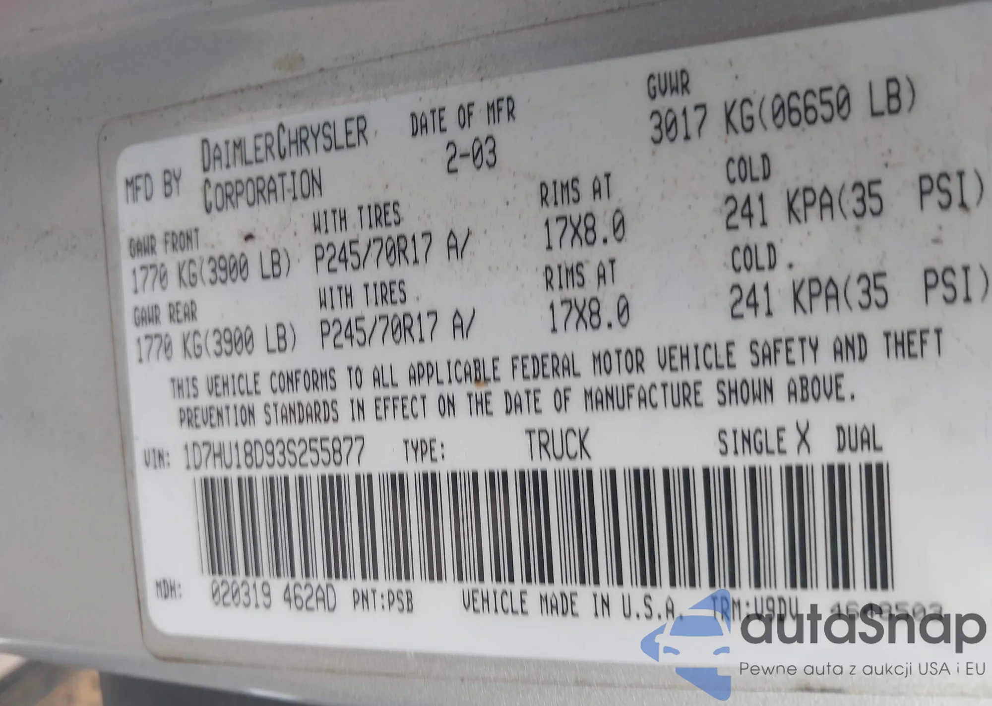 • VIN: 1D7HU18D93S255877