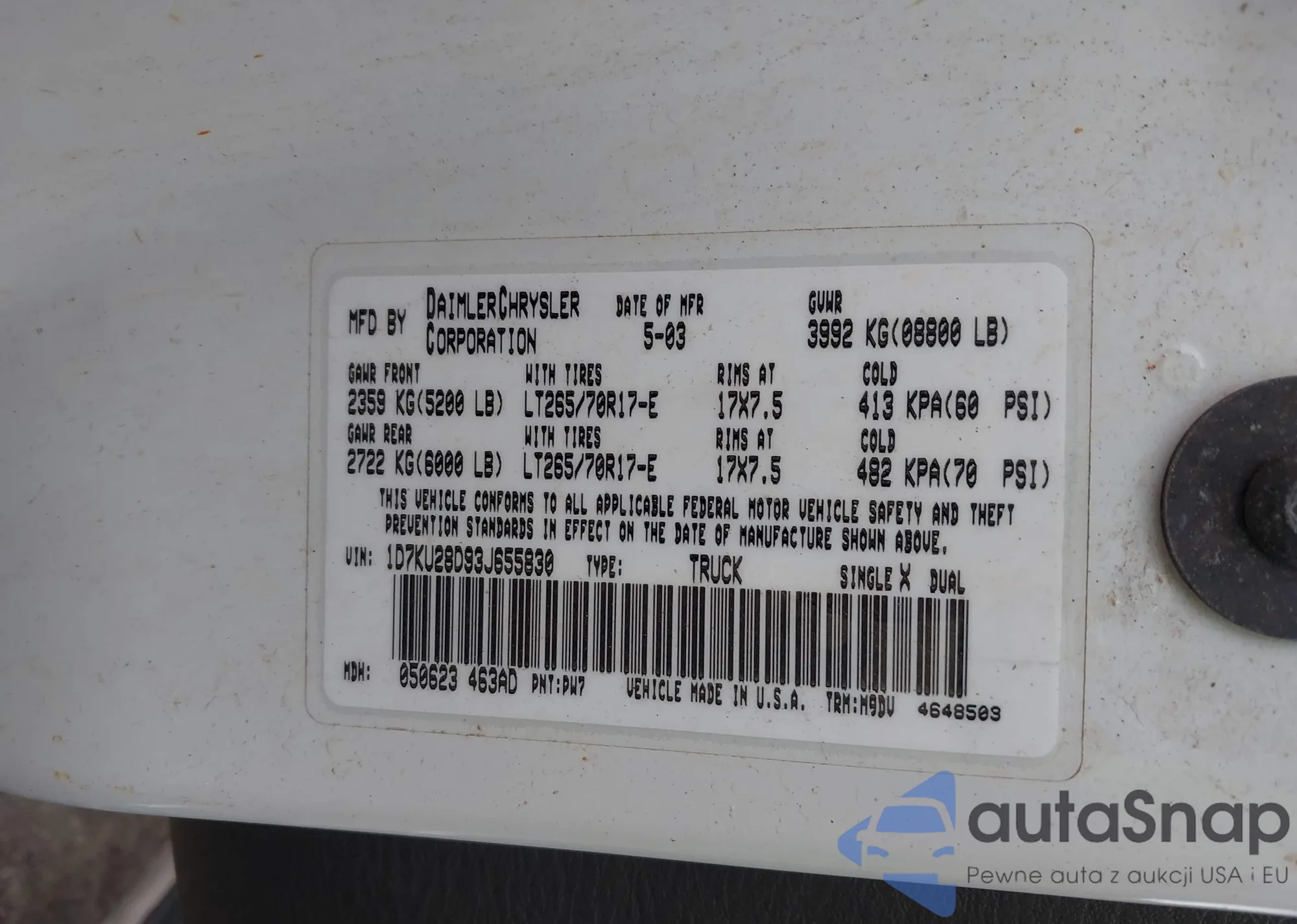VIN: 1D7KU28D93J655830