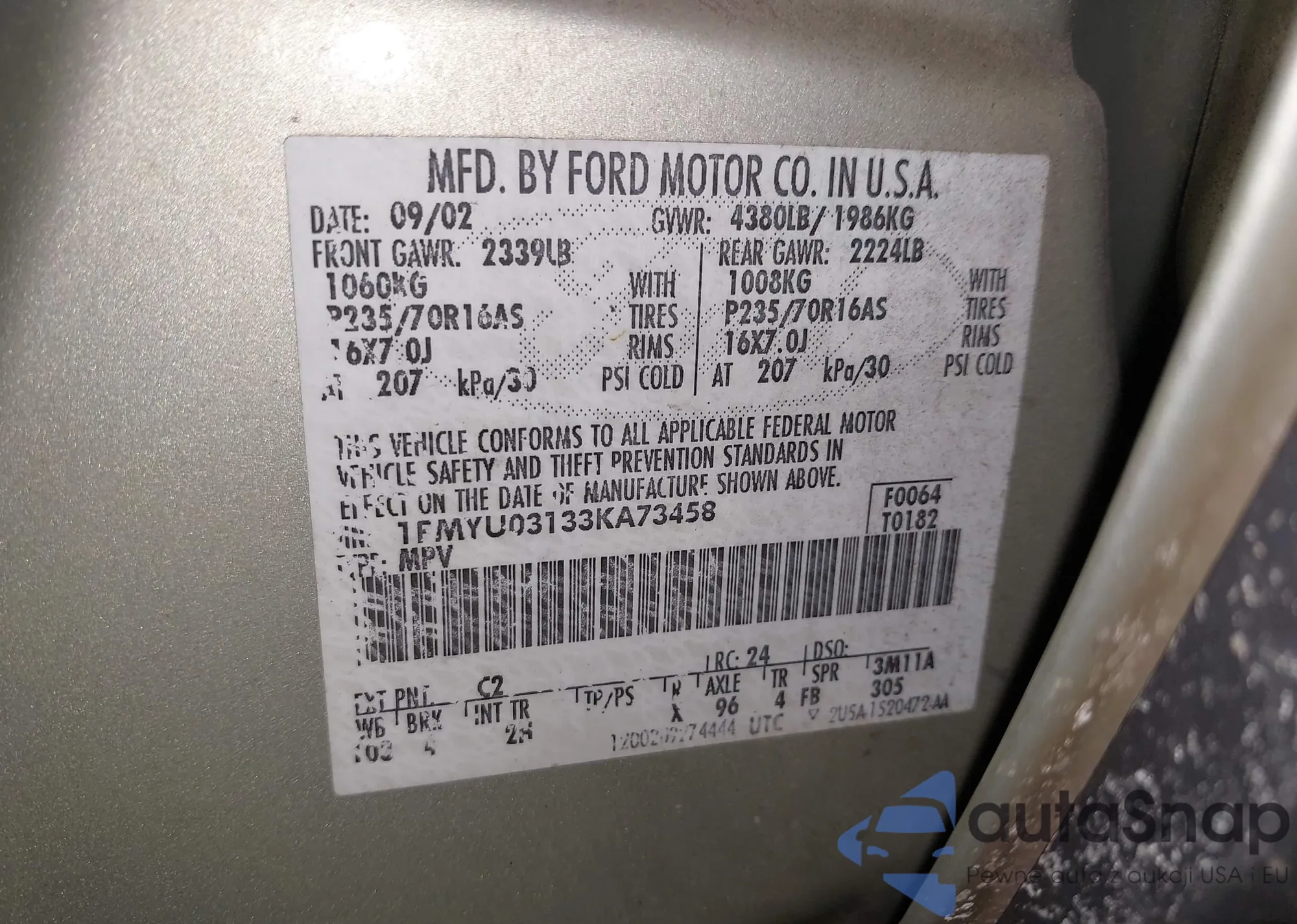 1FMYU03133KA73458 IAAI