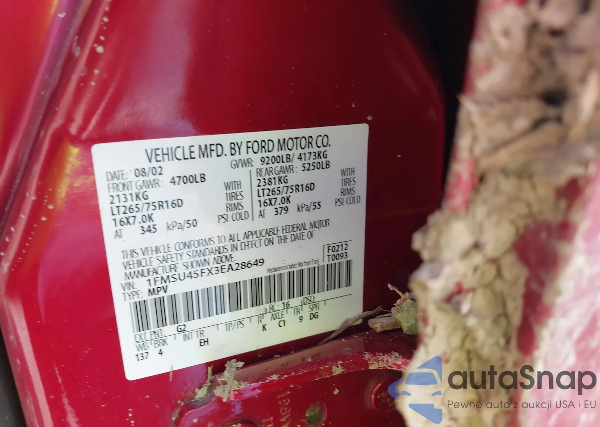 VIN: 1FMSU45FX3EA28649