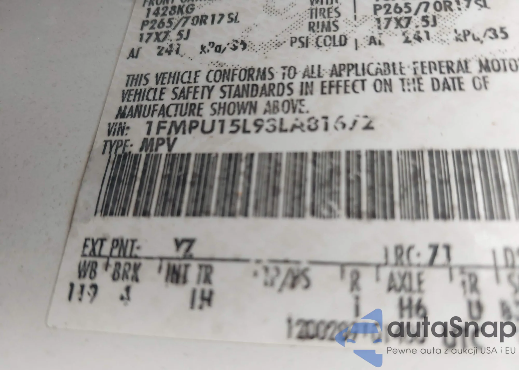 VIN: 1FMPU15L93LA81672