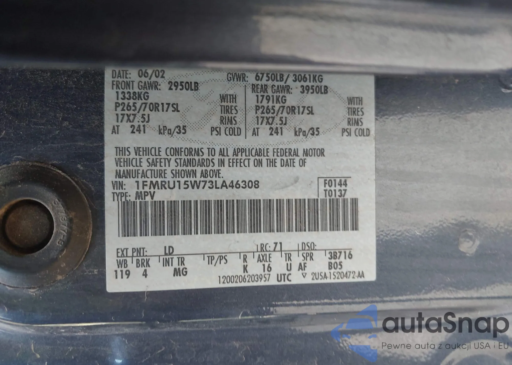 VIN: 1FMRU15W73LA46308