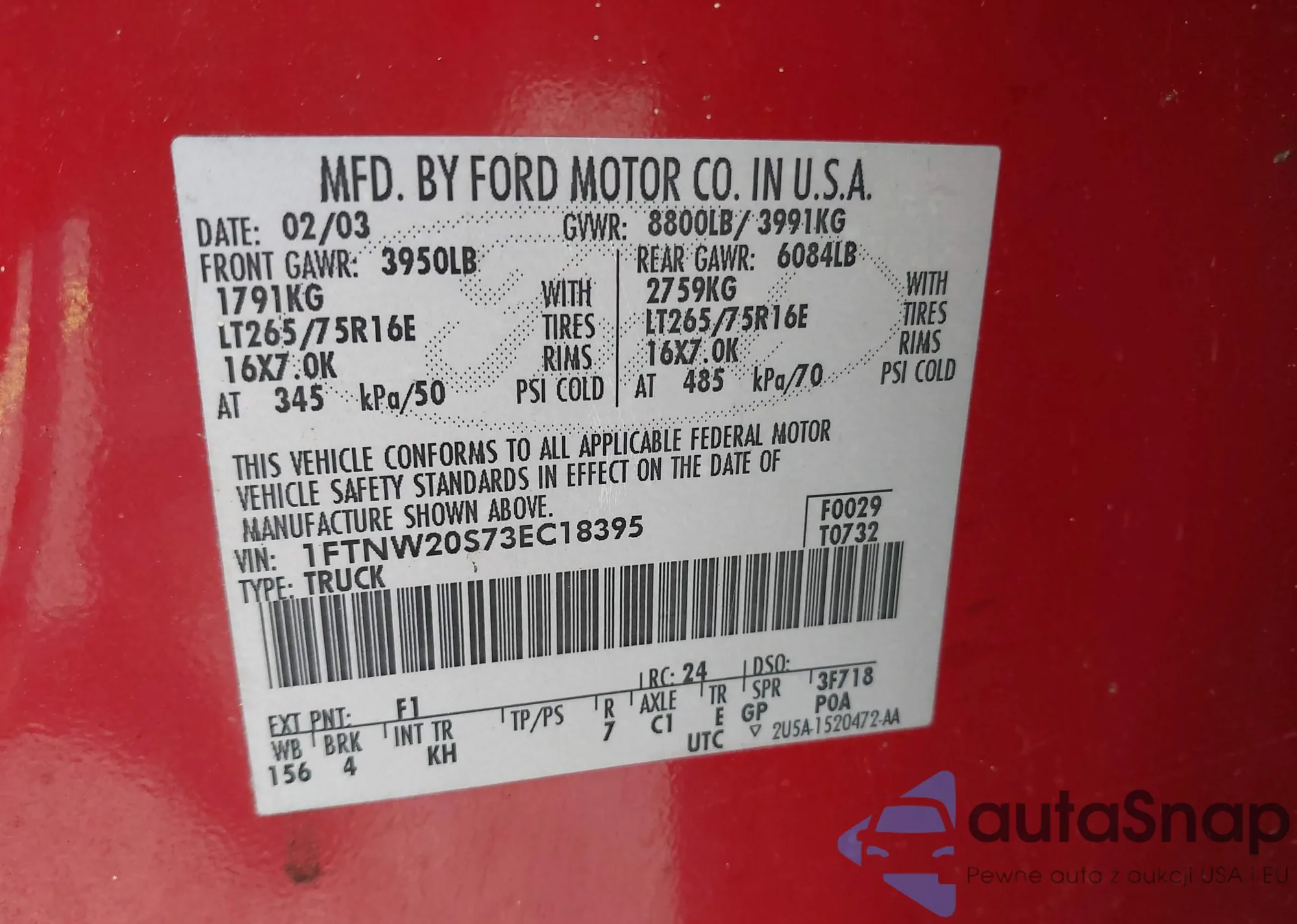 VIN: 1FTNW20S73EC18395