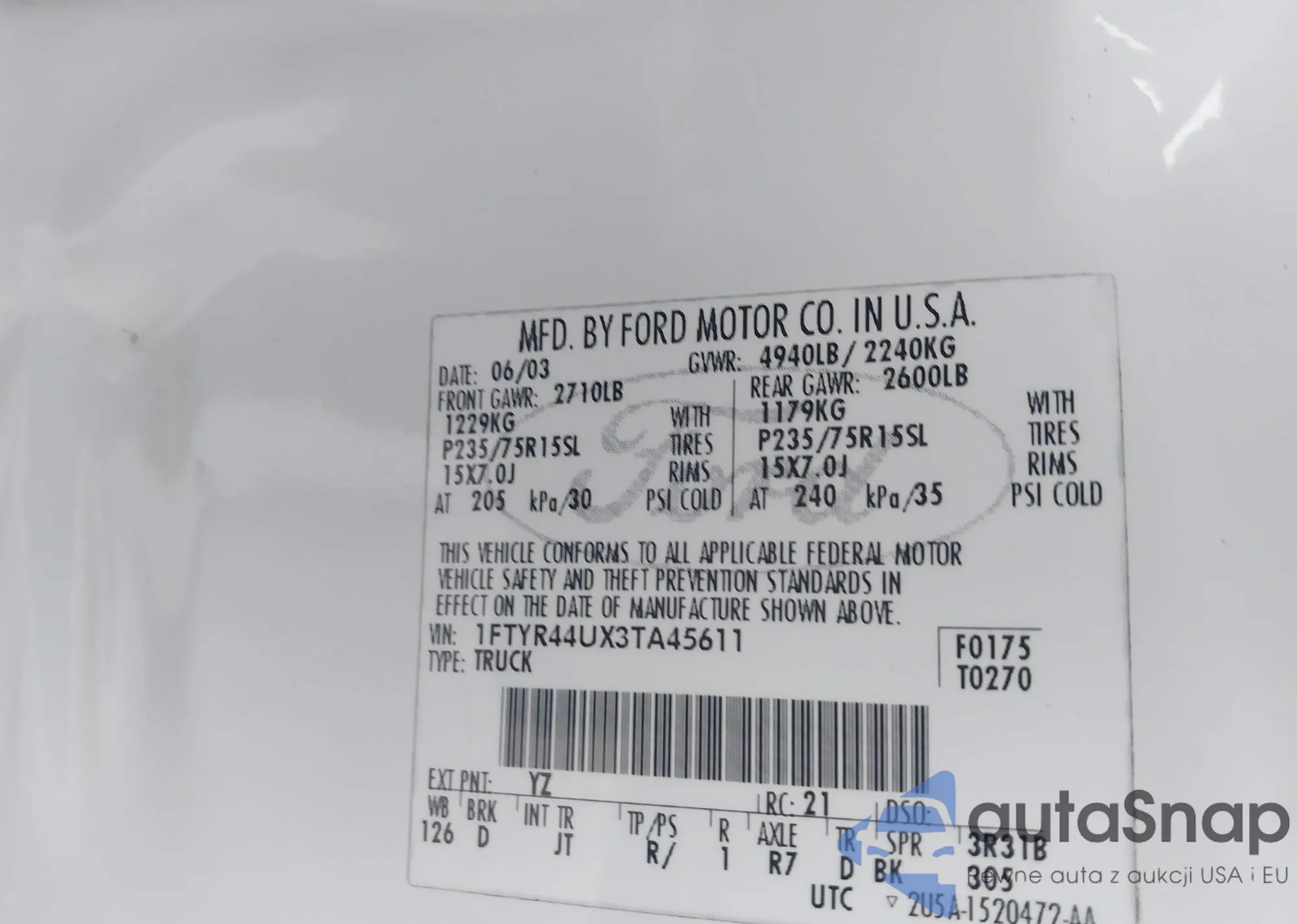 VIN: 1FTYR44UX3TA45611