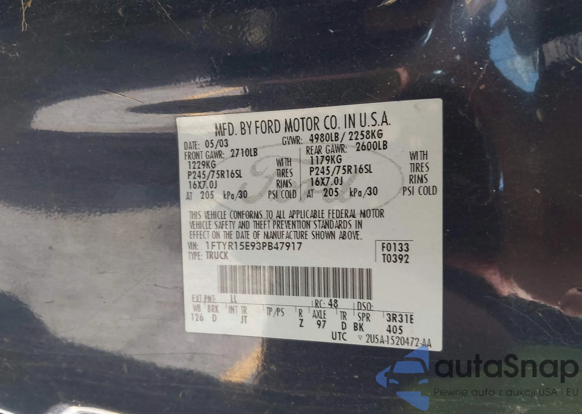 VIN: 1FTYR15E93PB47917
