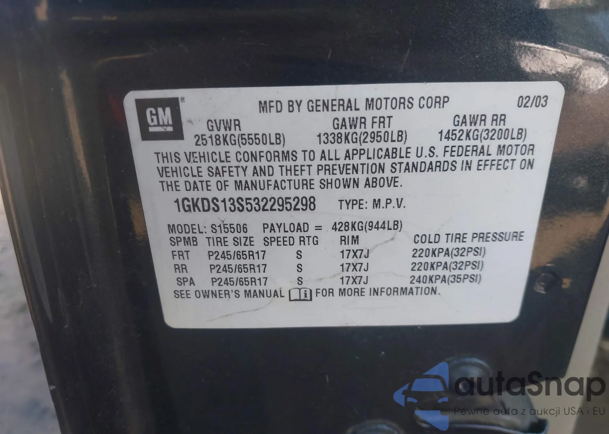 VIN: 1GKDS13S532295298