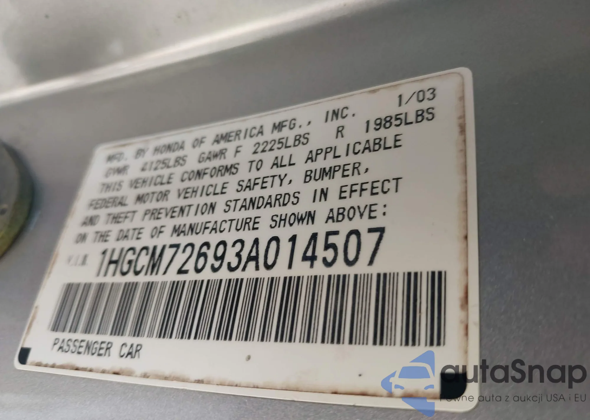 VIN: 1HGCM72693A014507