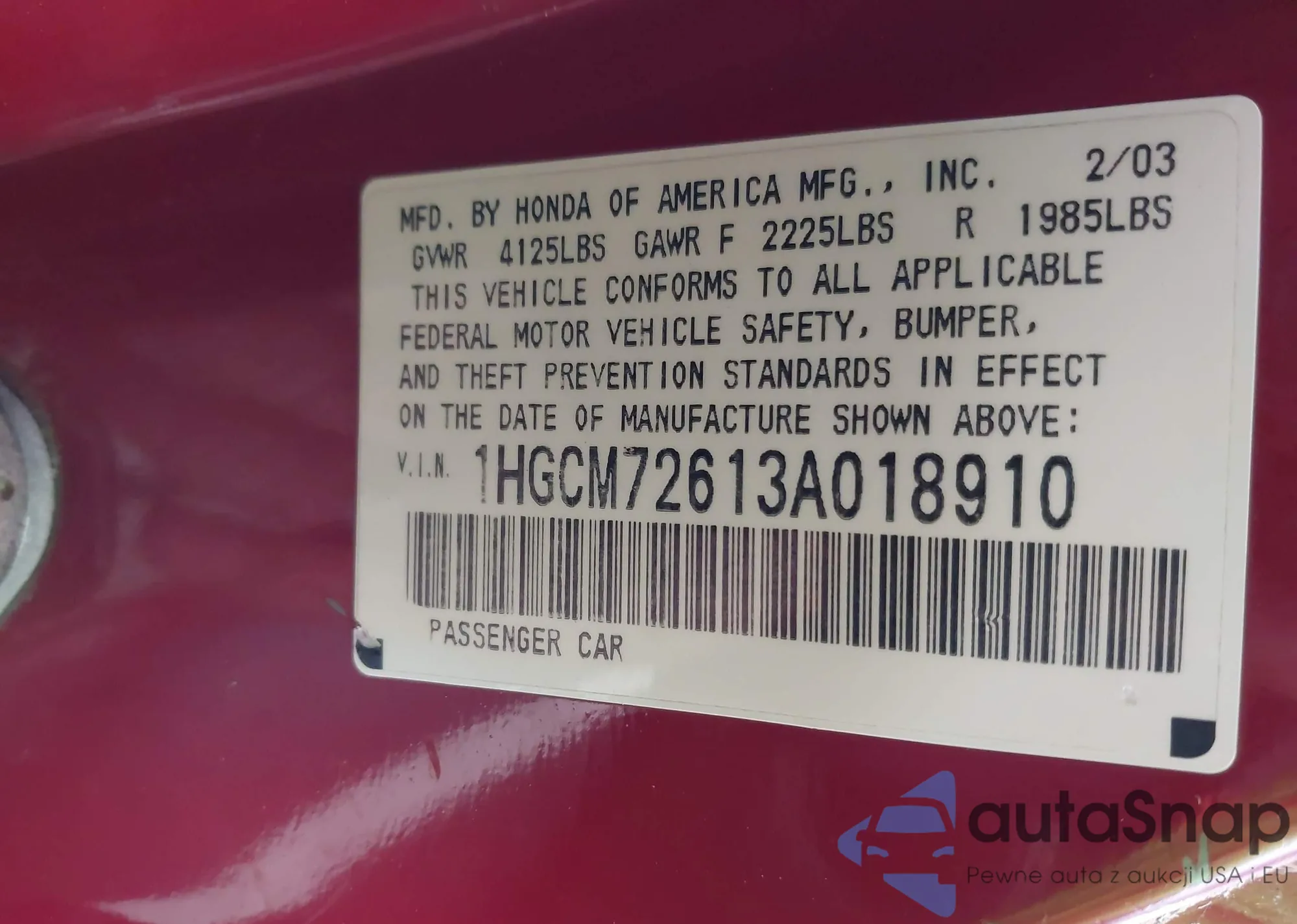 VIN: 1HGCM72613A018910