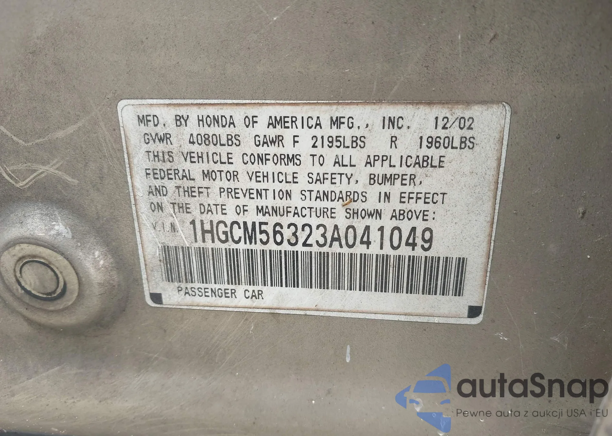 VIN: 1HGCM56323A041049