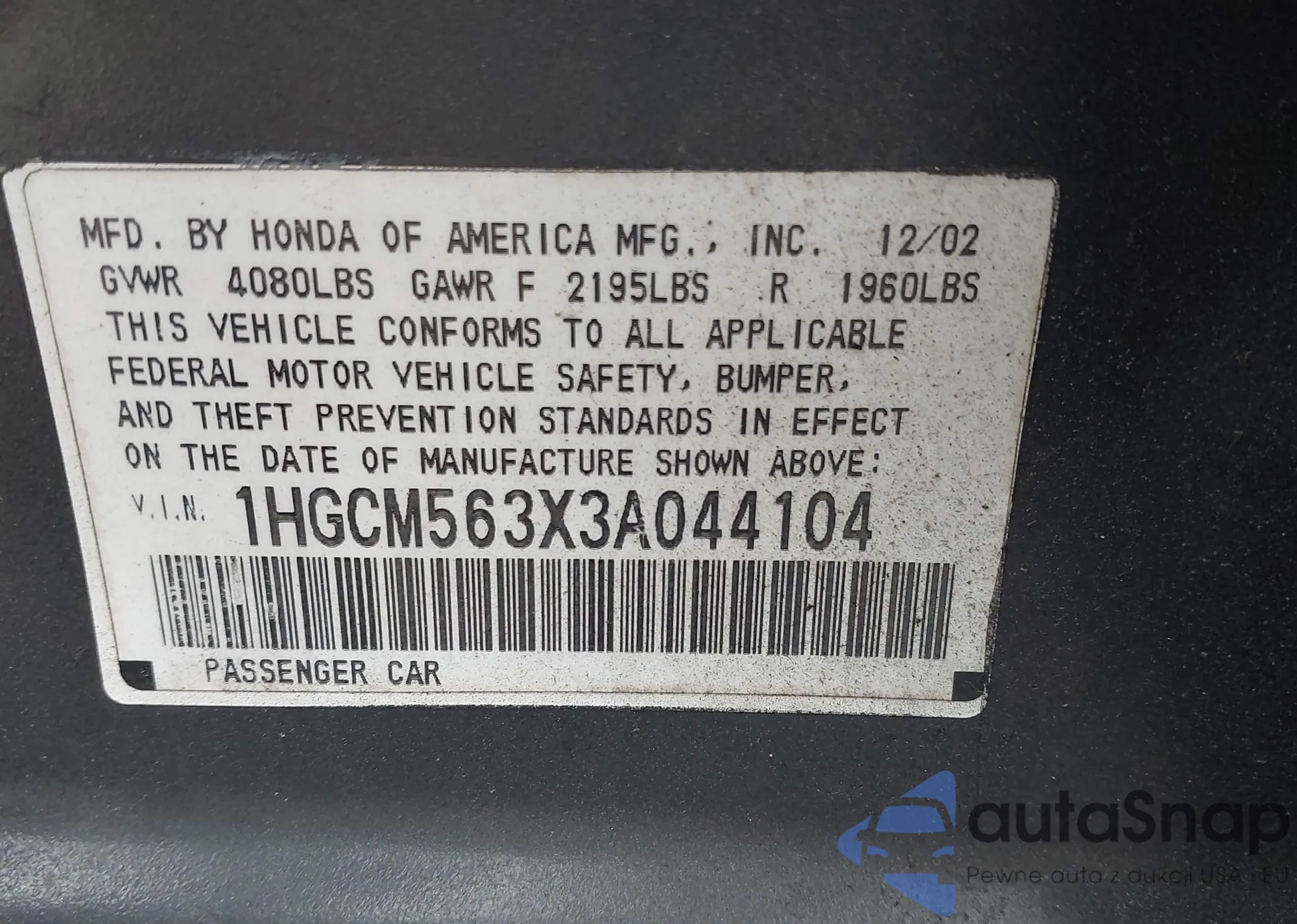 VIN: 1HGCM563X3A044104