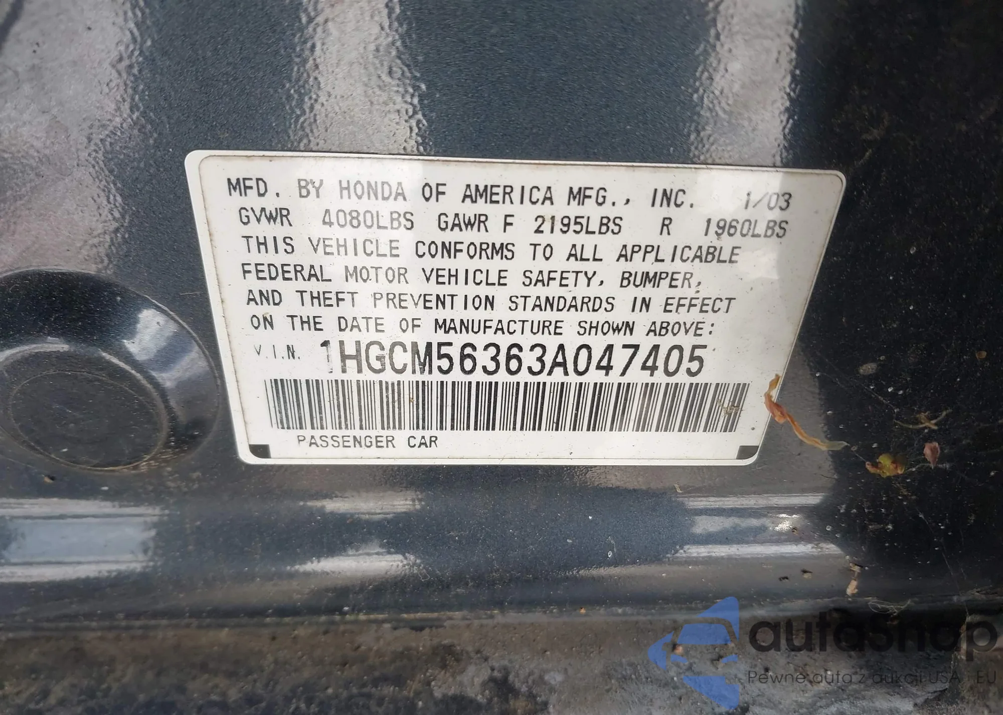 VIN: 1HGCM56363A047405