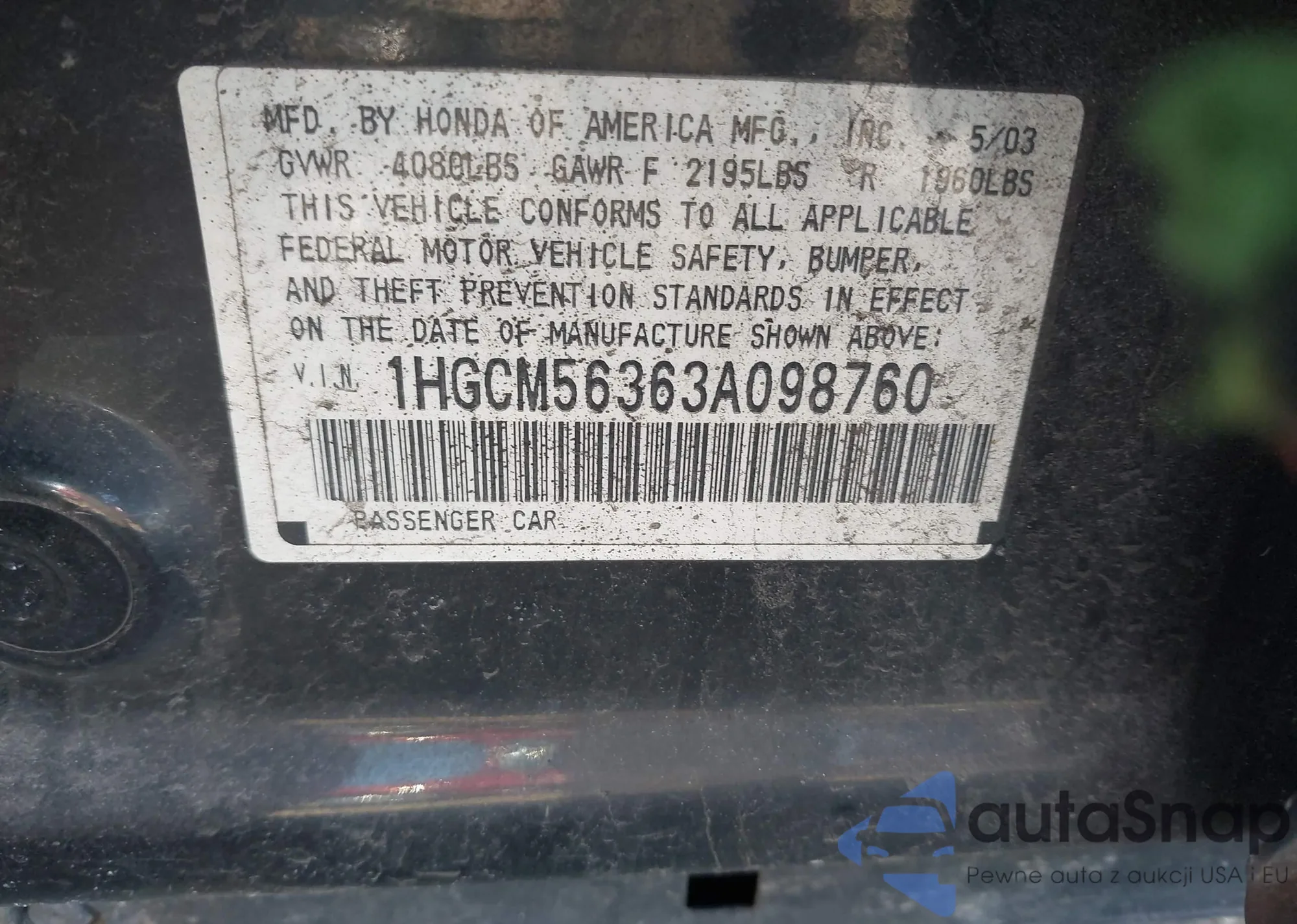 VIN: 1HGCM56363A098760