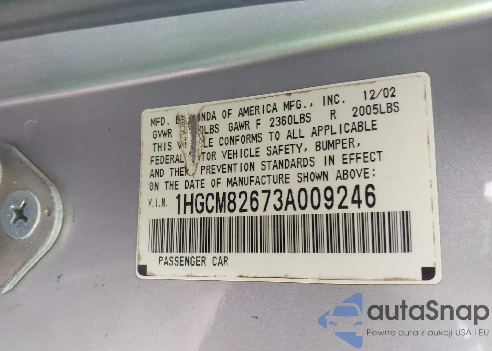 VIN: 1HGCM82673A009246