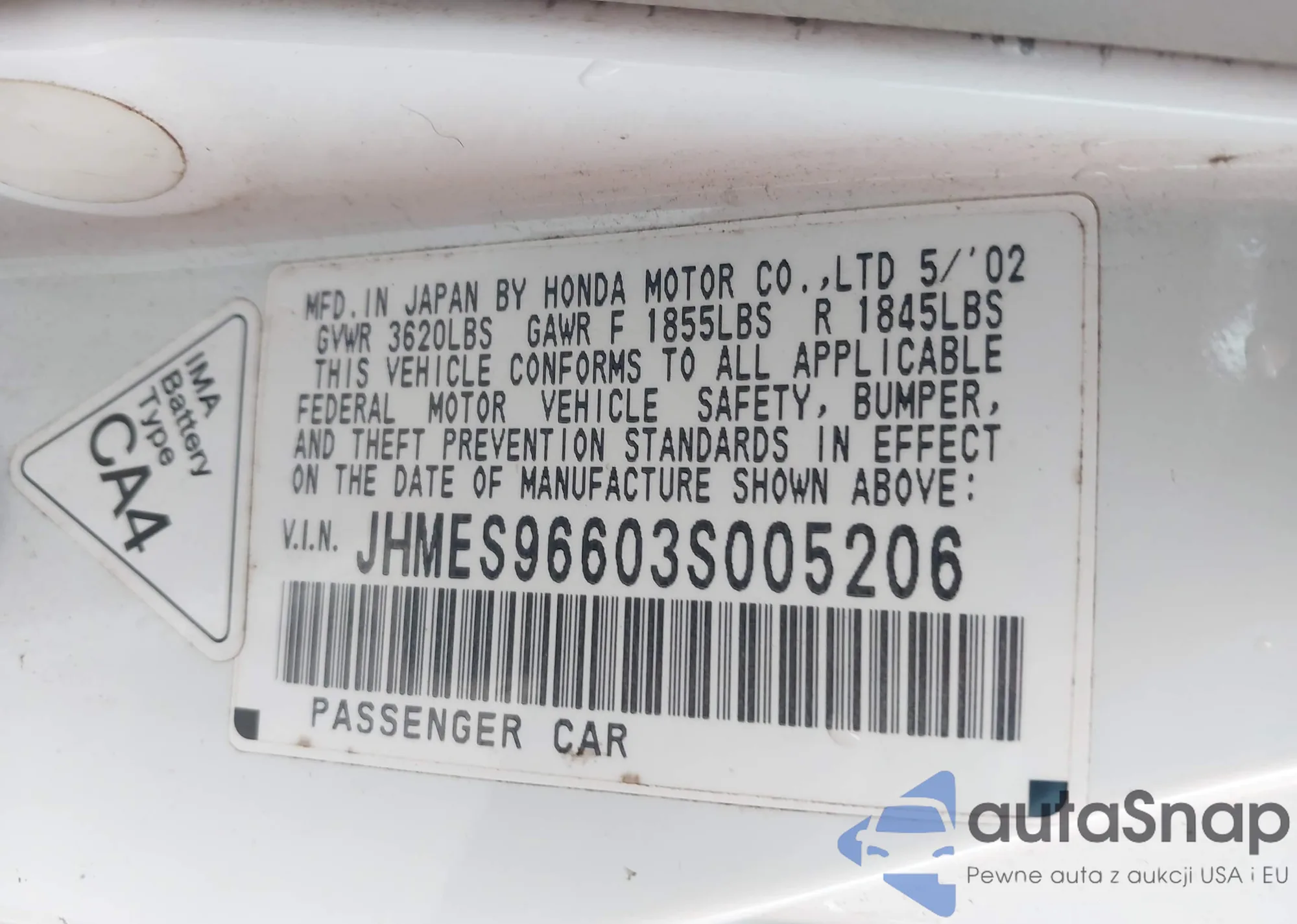 VIN: JHMES96603S005206