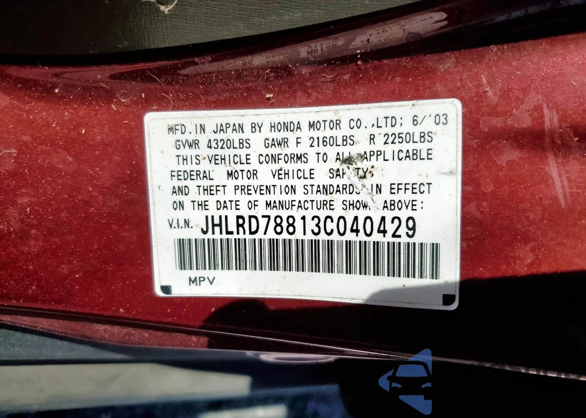 VIN: JHLRD78813C040429