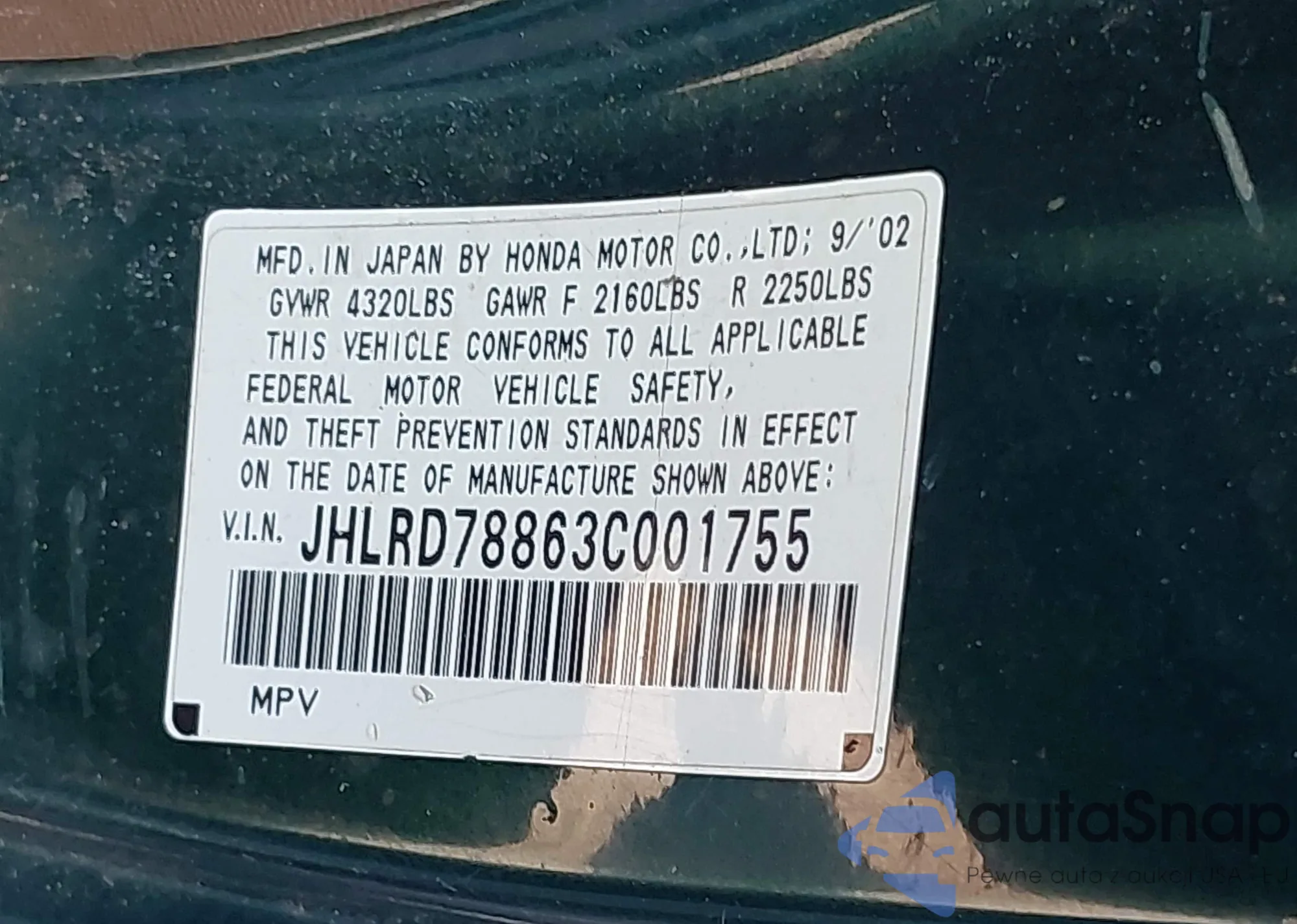 VIN: JHLRD78863C001755