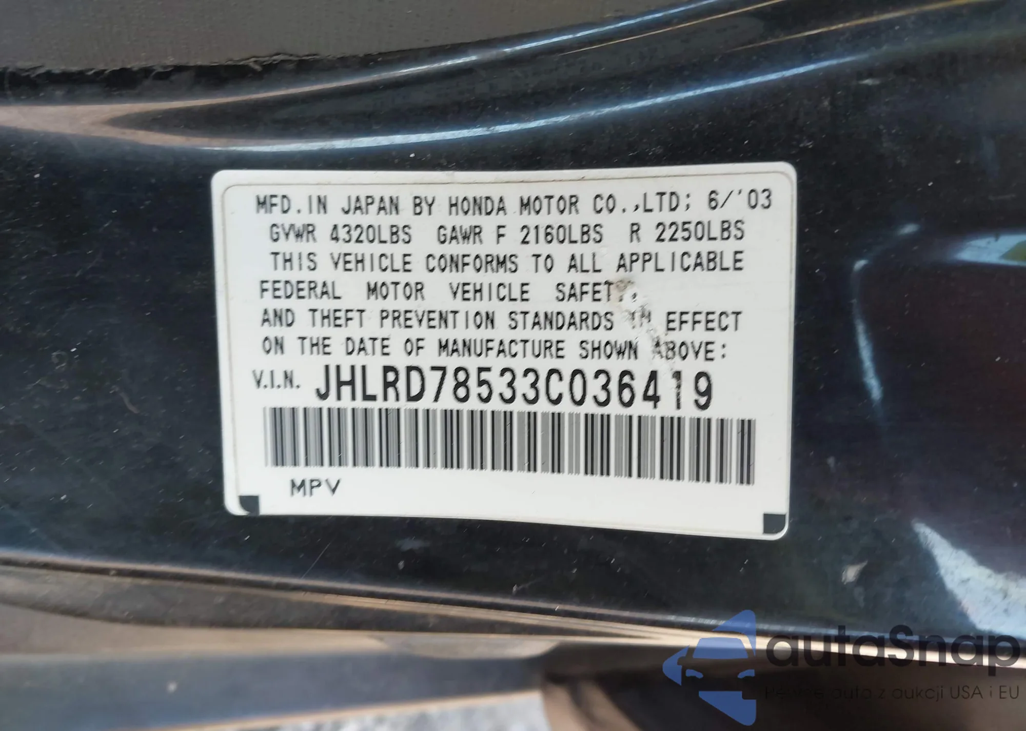 VIN: JHLRD78533C036419