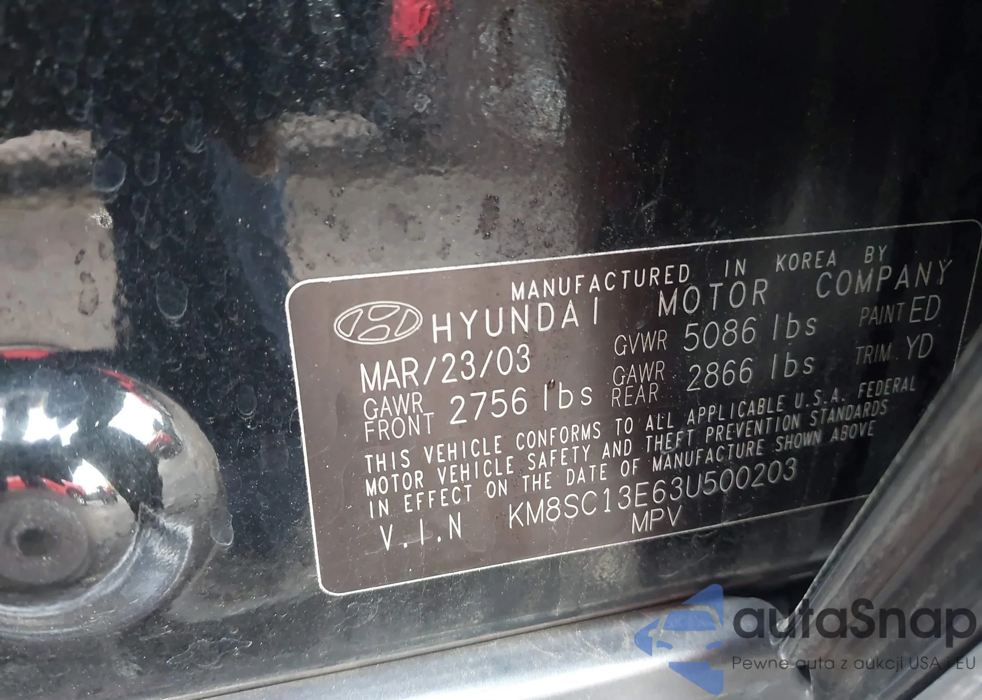 • VIN: KM8SC13E63U500203