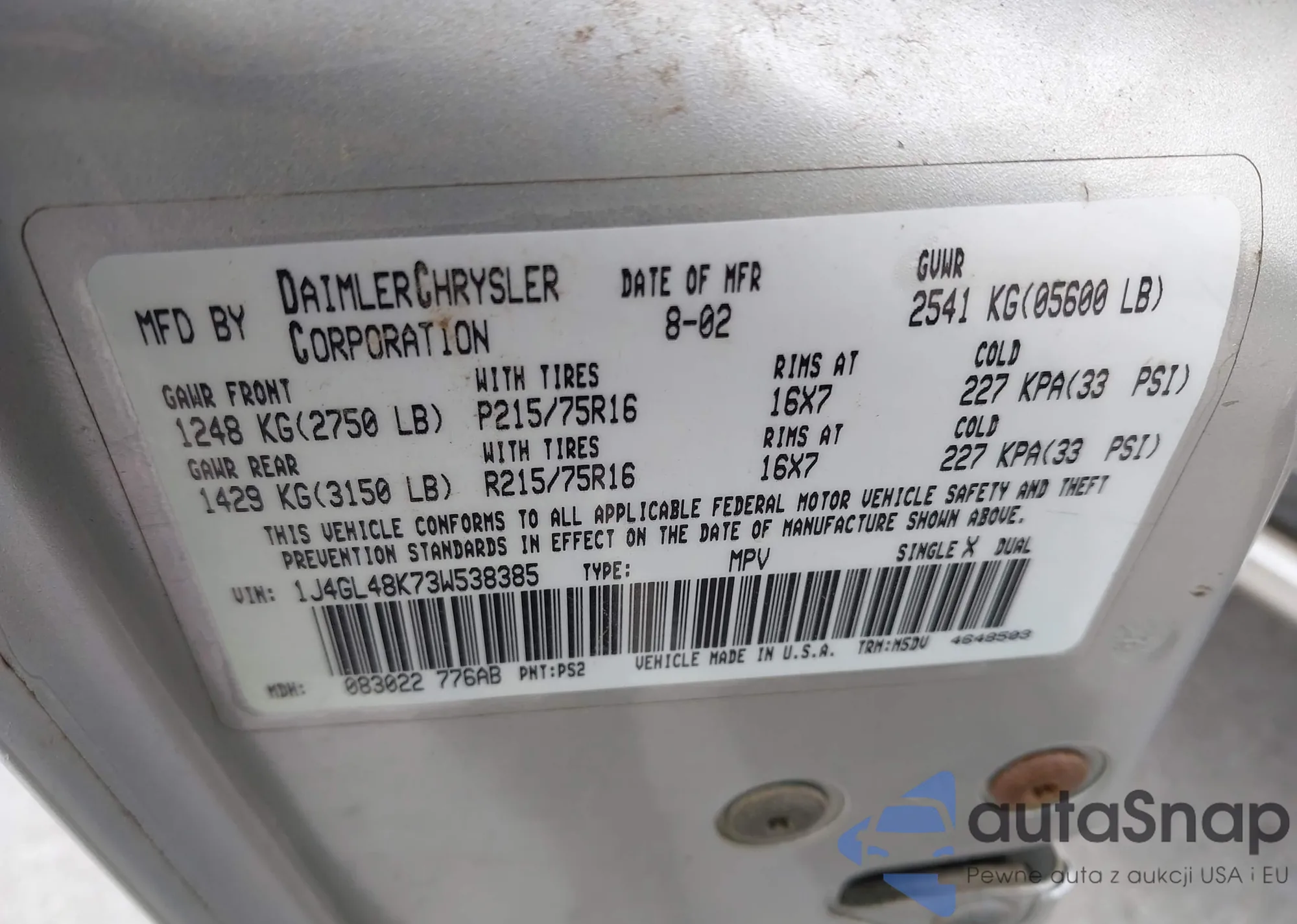 VIN: 1J4GL48K73W538385