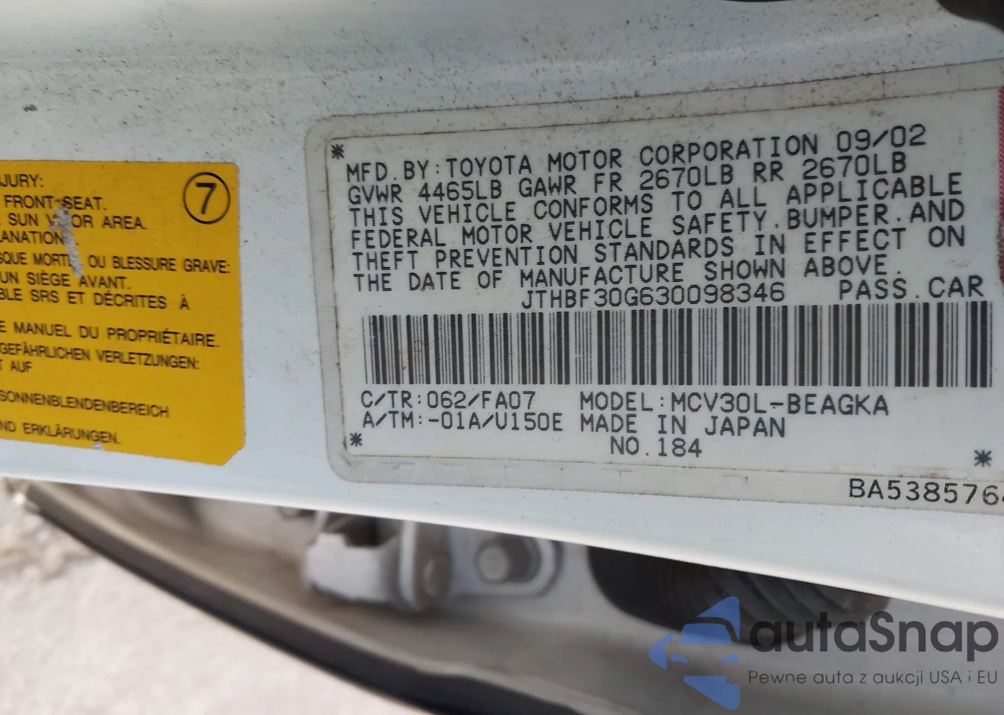 JTHBF30G630098346 IAAI