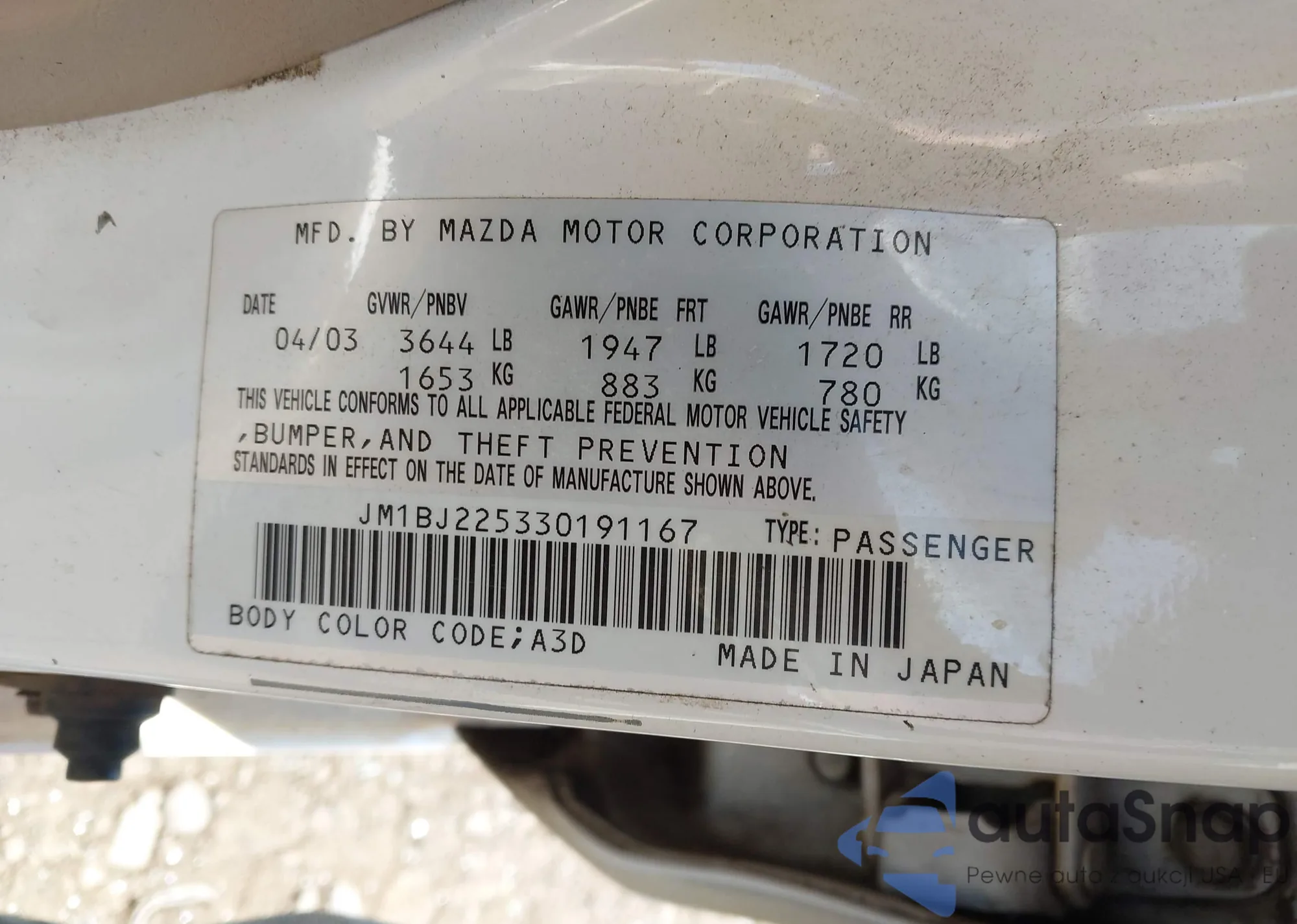 Автомобиль Mazda Protege 2003 (VIN JM1BJ225330191167) ранее не участвовал в торгах. Документы чистые, пробег соответствует или ниже среднего по рынку. Продаётся страховой компанией — рекомендуем покупку. Доставка в порт займет около 6–8 недель.