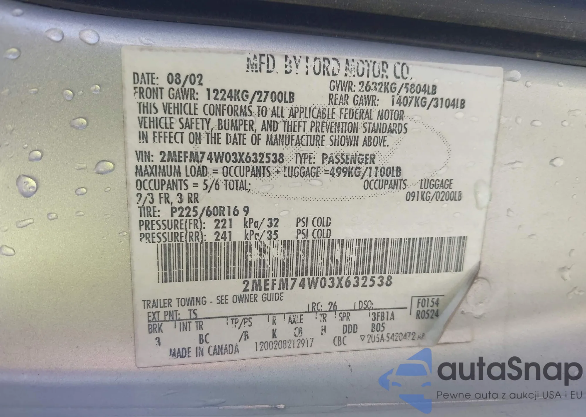 VIN: 2MEFM74W03X632538