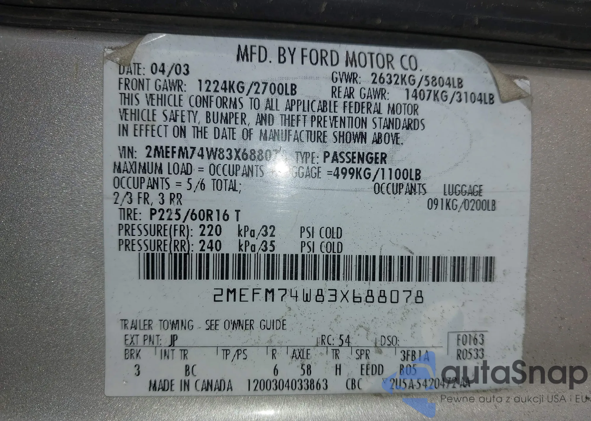 Автомобиль Mercury Grand Marquis 2003 (VIN 2MEFM74W83X688078) продаётся непроверенным продавцом. Рекомендуем проверить отчет Carfax и подтвердить возможность регистрации перед покупкой.