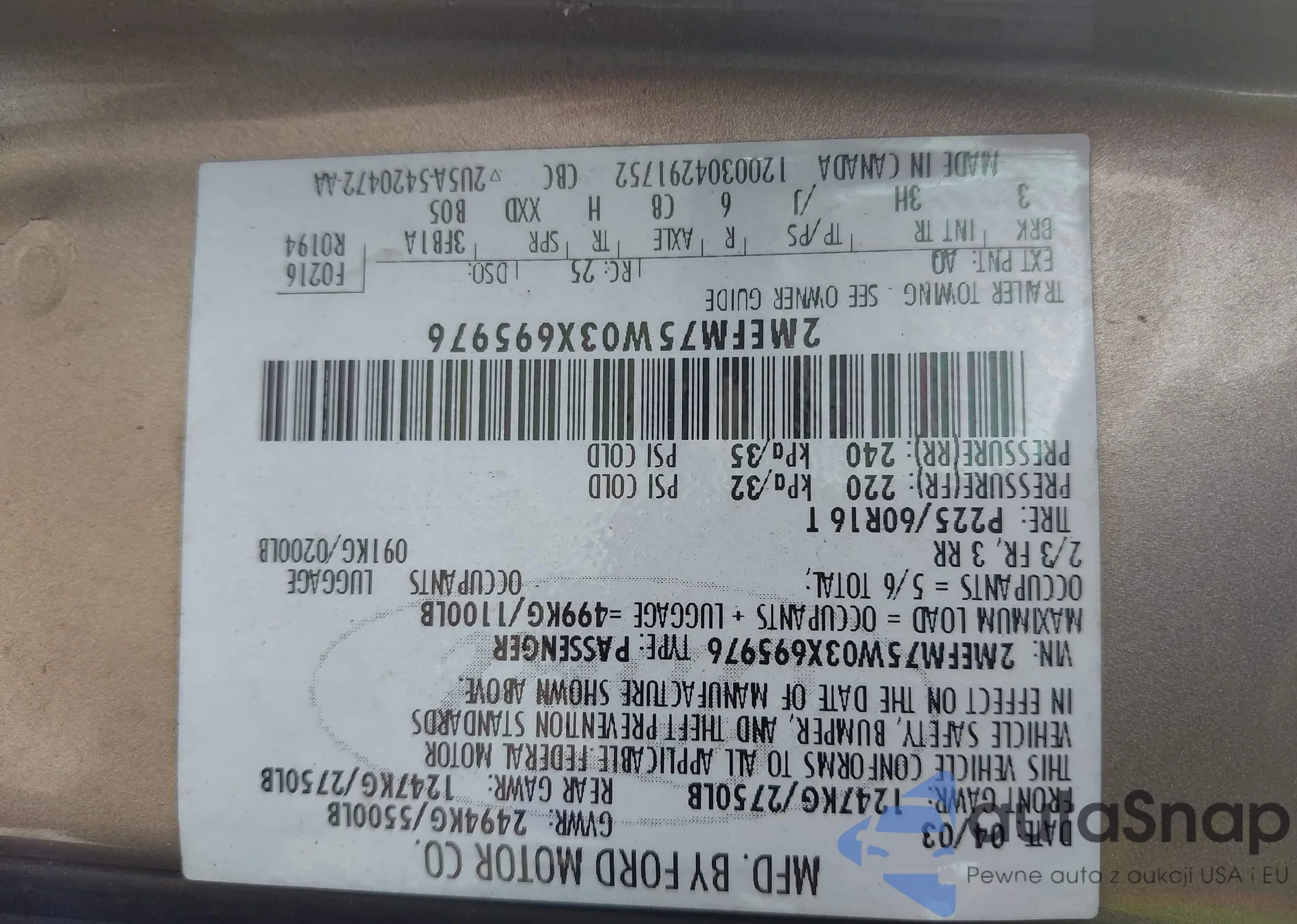 • VIN: 2MEFM75W03X695976