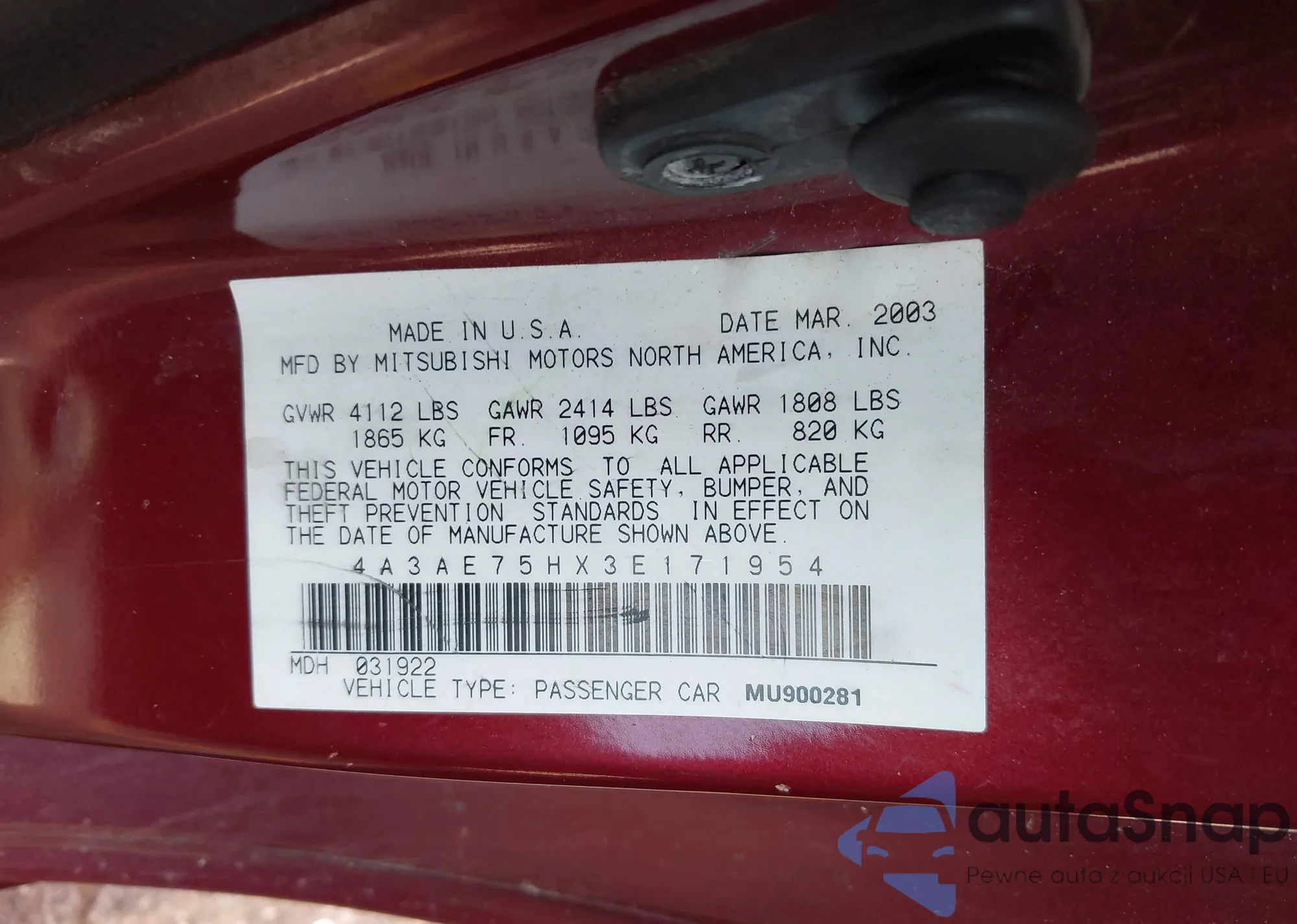 VIN: 4A3AE75HX3E171954
