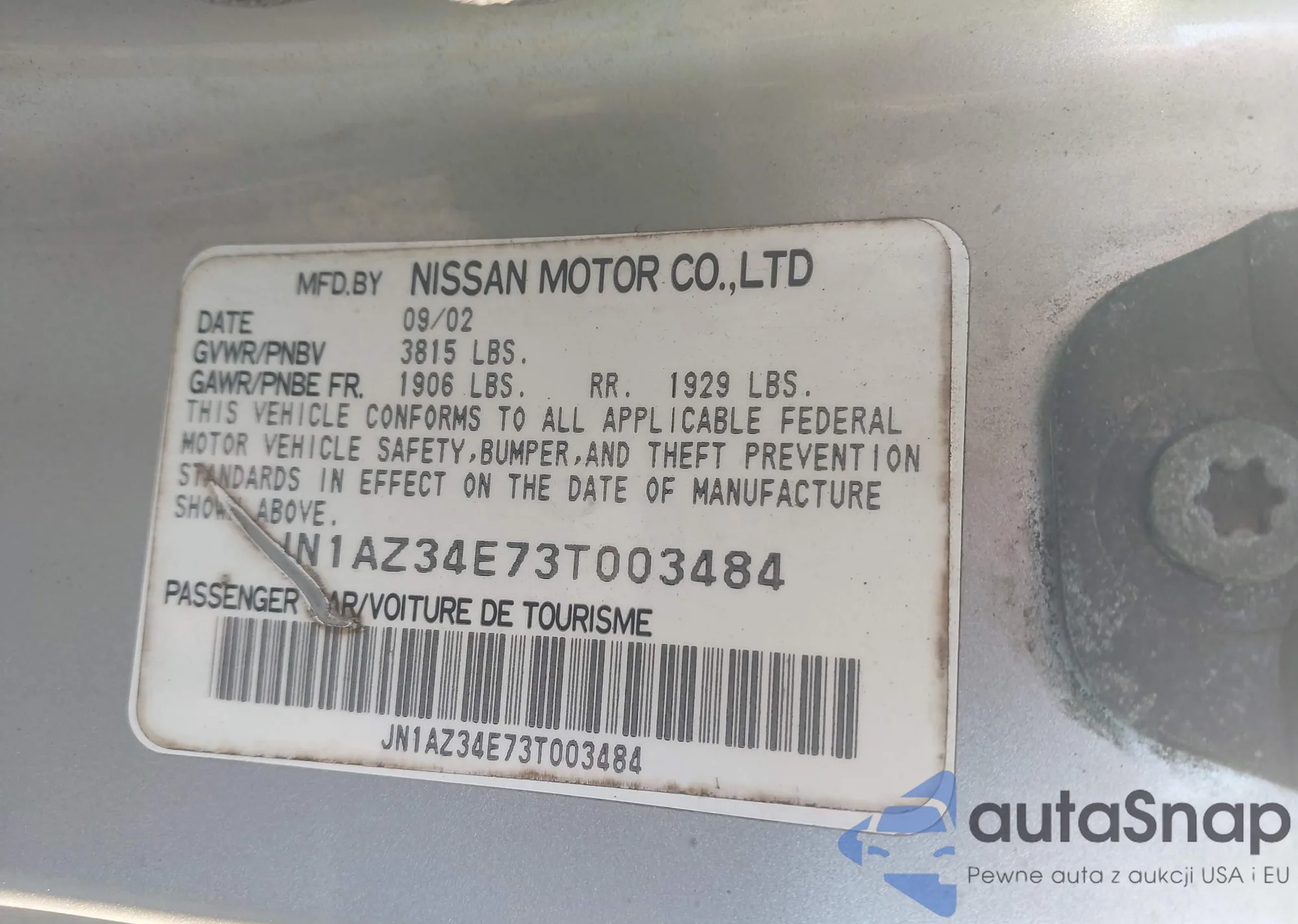 Автомобиль Nissan 350Z 2003 (VIN JN1AZ34E73T003484) ранее не участвовал в торгах. Документы чистые, пробег соответствует или ниже среднего по рынку. Продаётся страховой компанией — рекомендуем покупку. Доставка в порт займет около 6–8 недель.