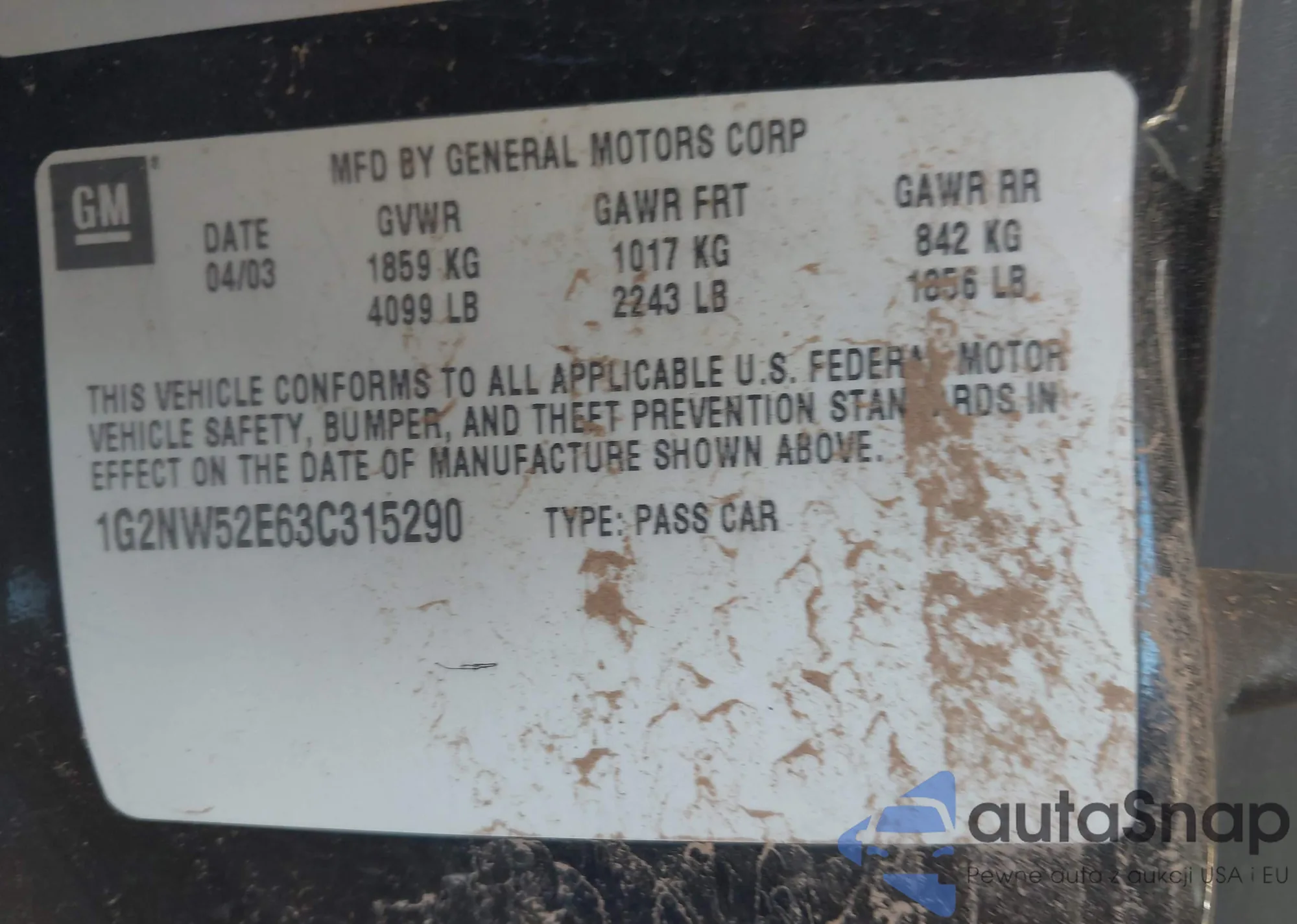 VIN: 1G2NW52E63C315290