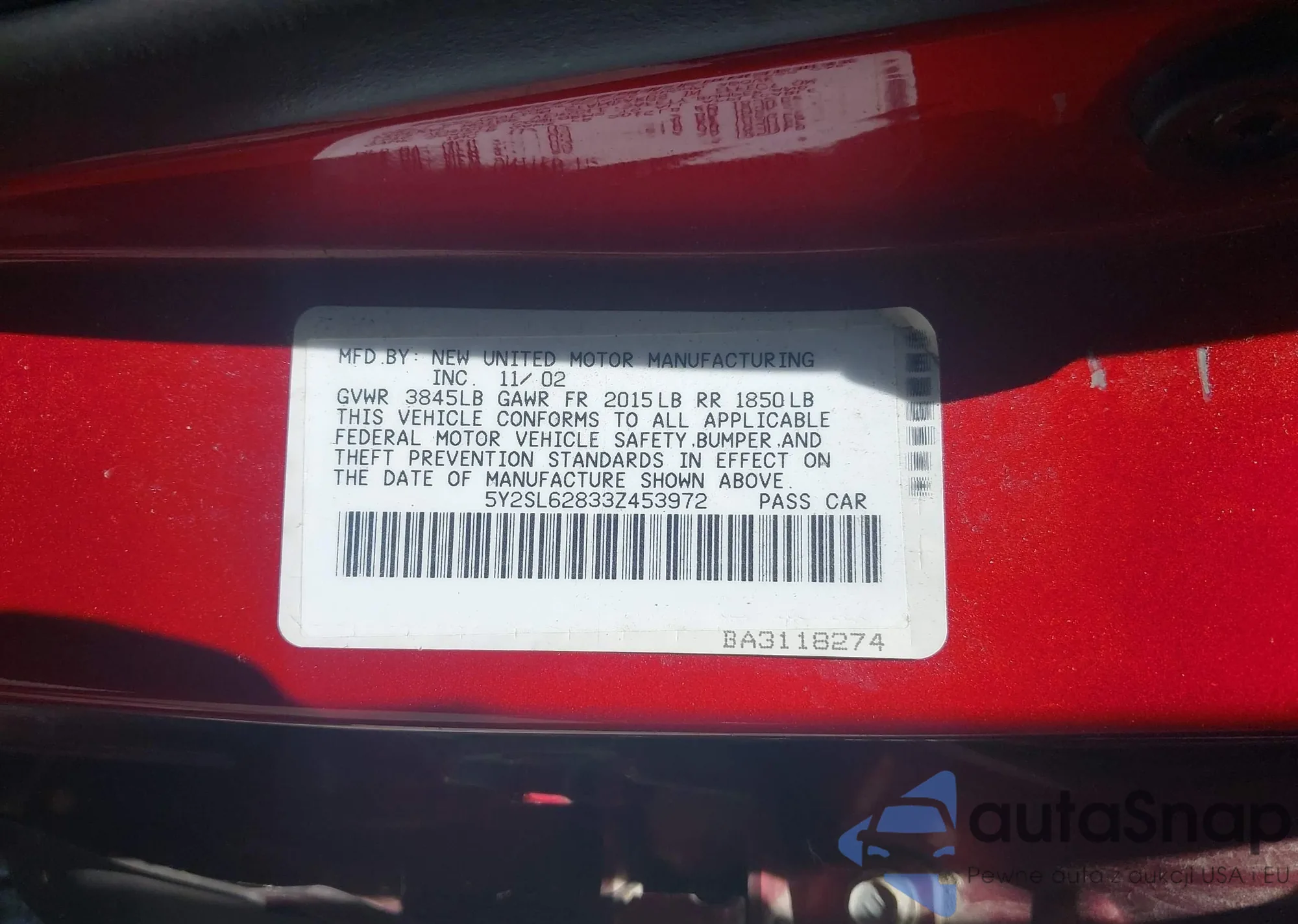 VIN: 5Y2SL62833Z453972