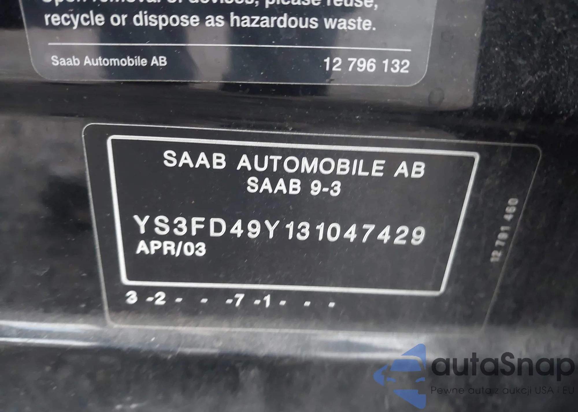 VIN: YS3FD49Y131047429