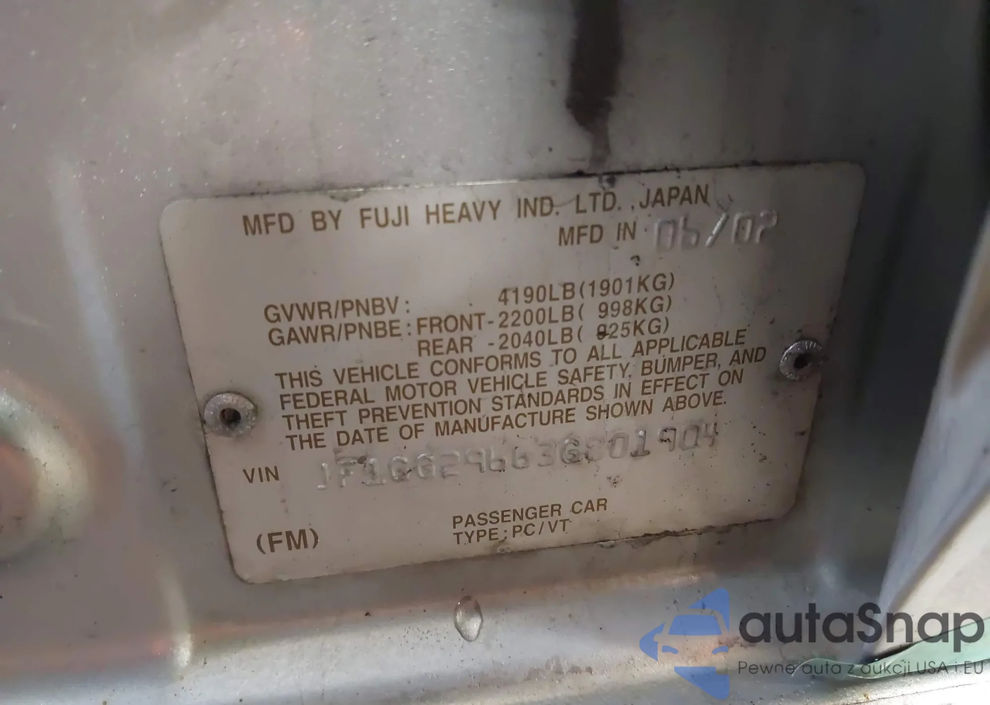 VIN: JF1GG29663G801904
