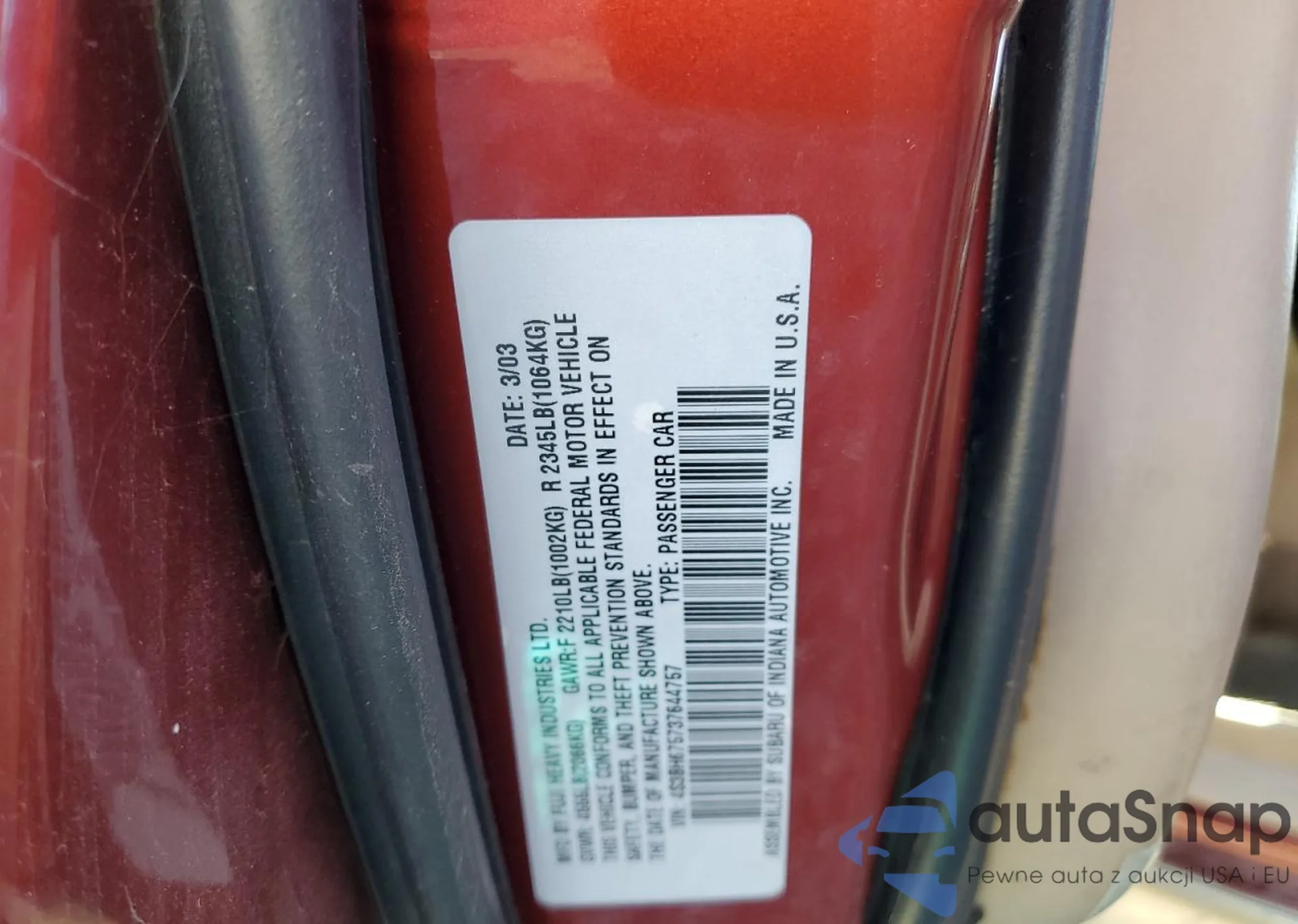 VIN: 4S3BH675737644757