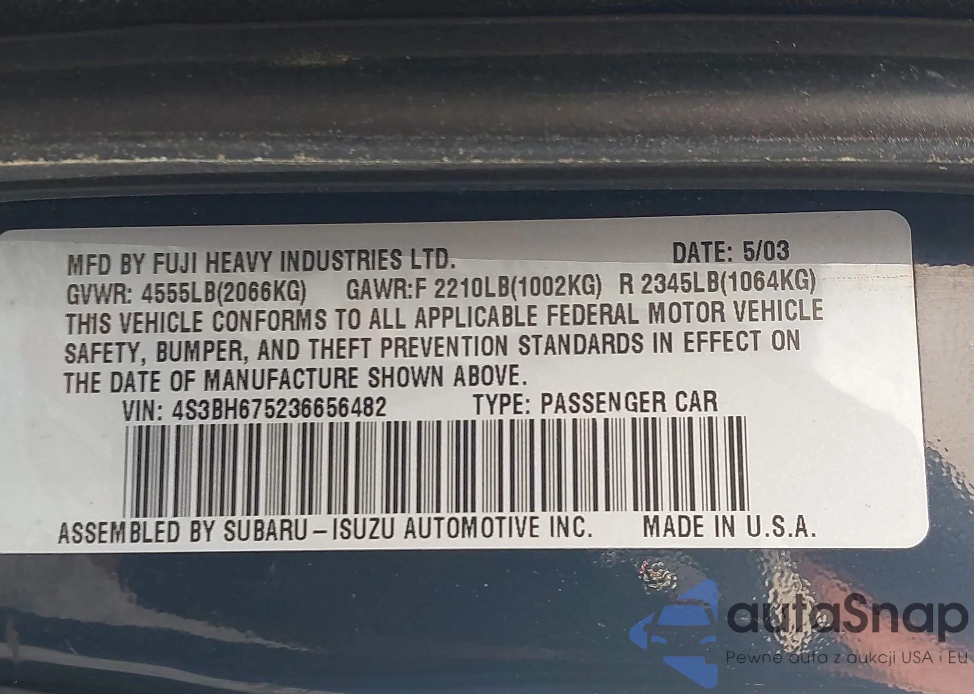 VIN: 4S3BH675236656482