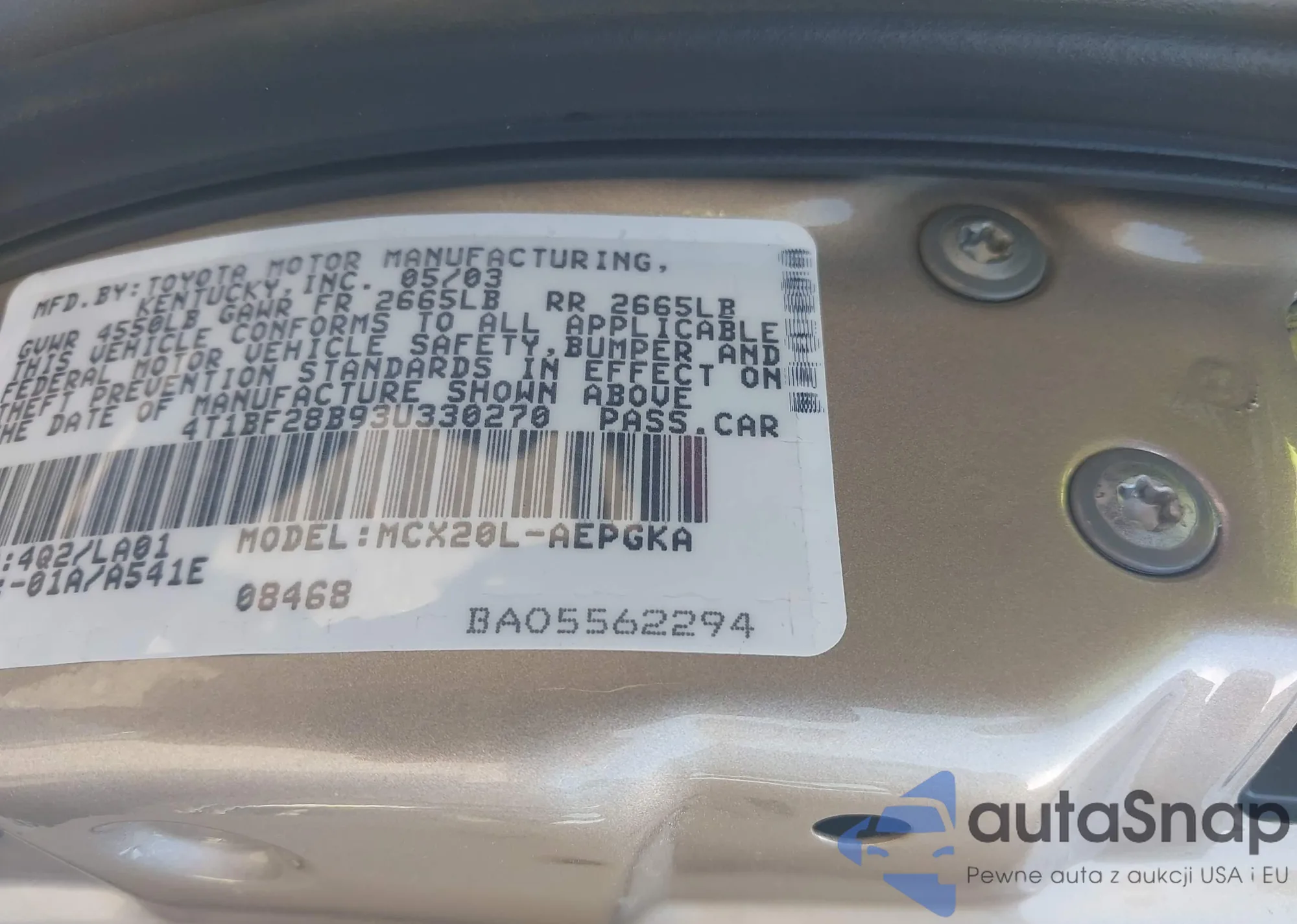 VIN: 4T1BF28B93U330270