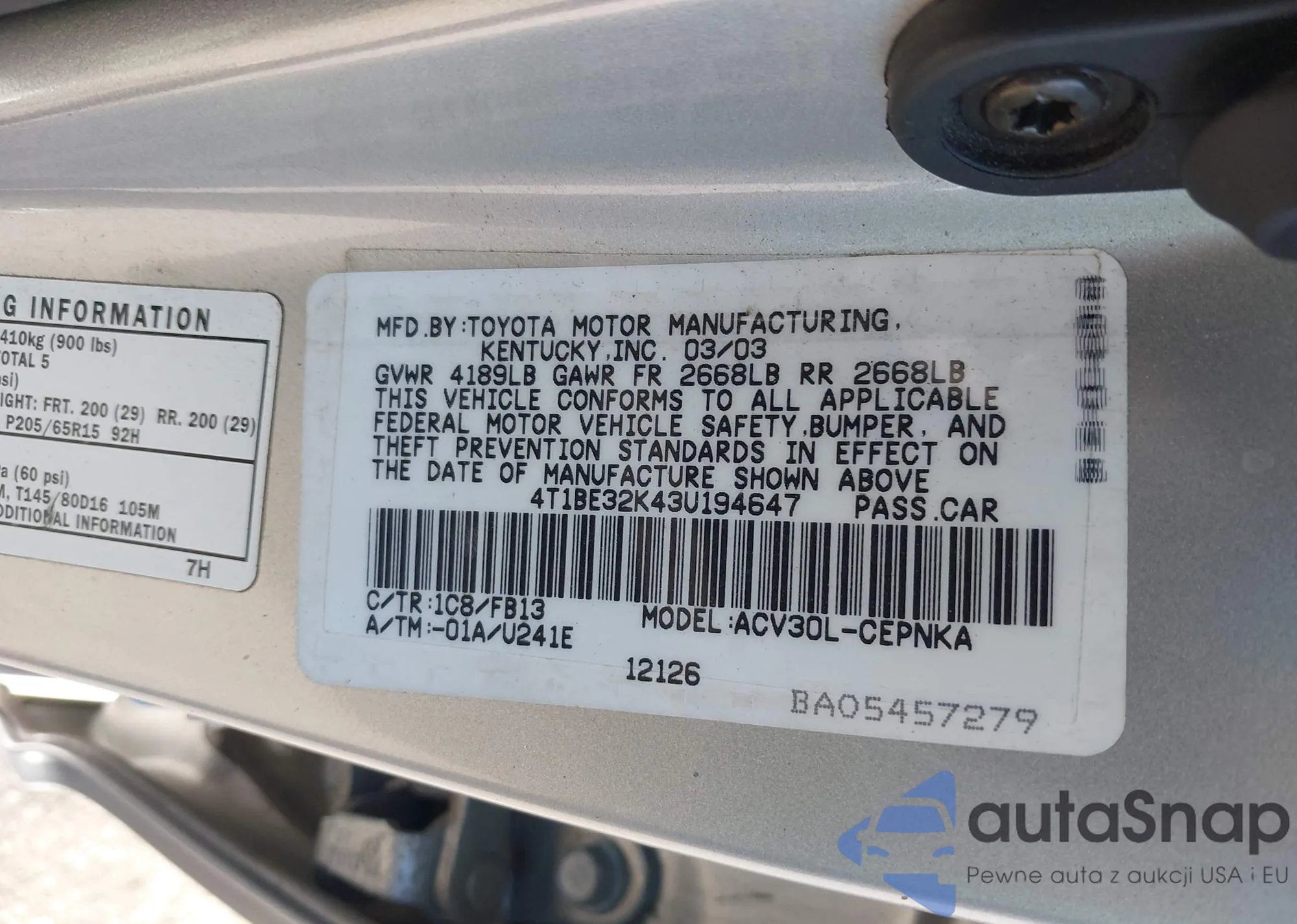 VIN: 4T1BE32K43U194647