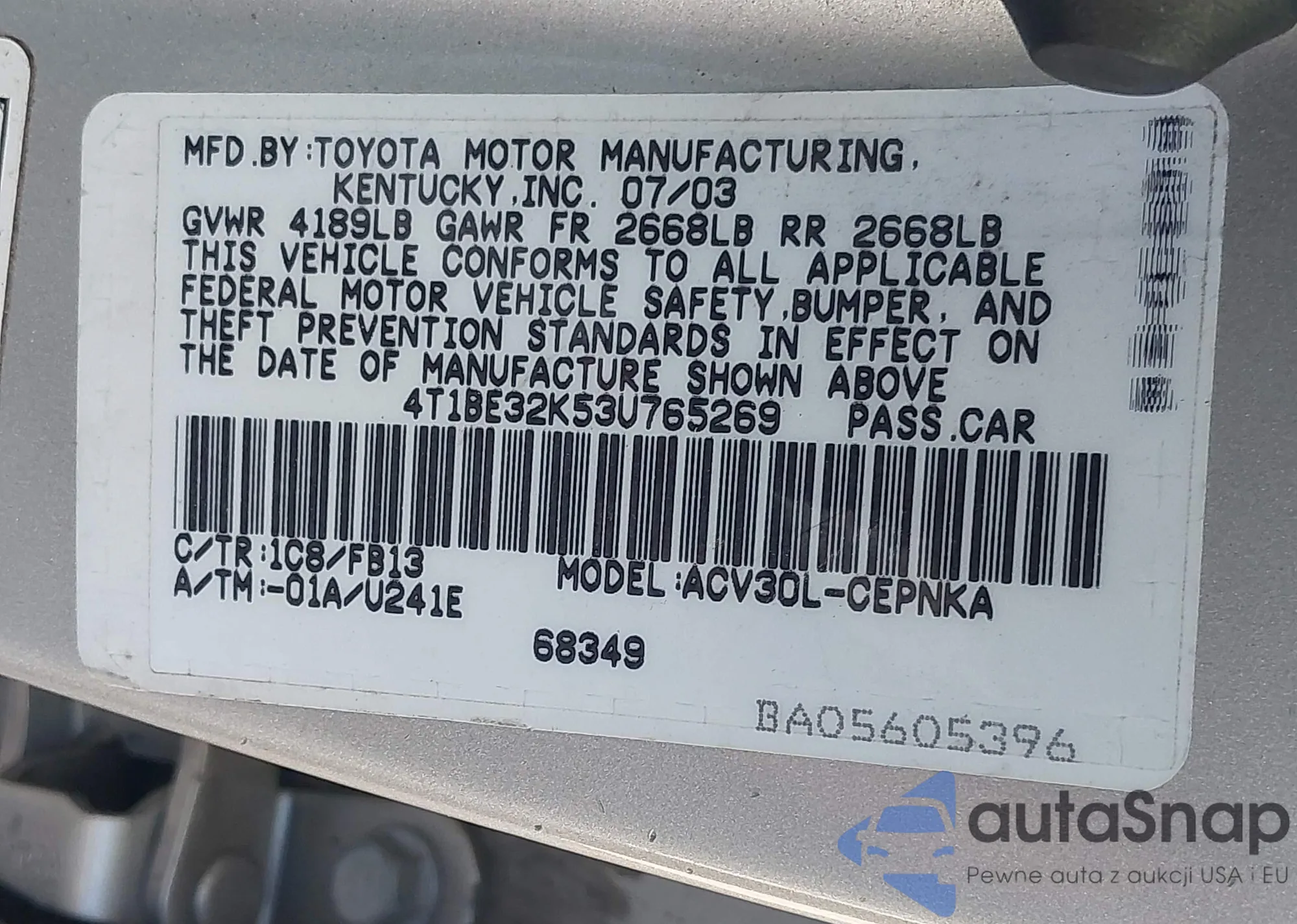 VIN: 4T1BE32K53U765269